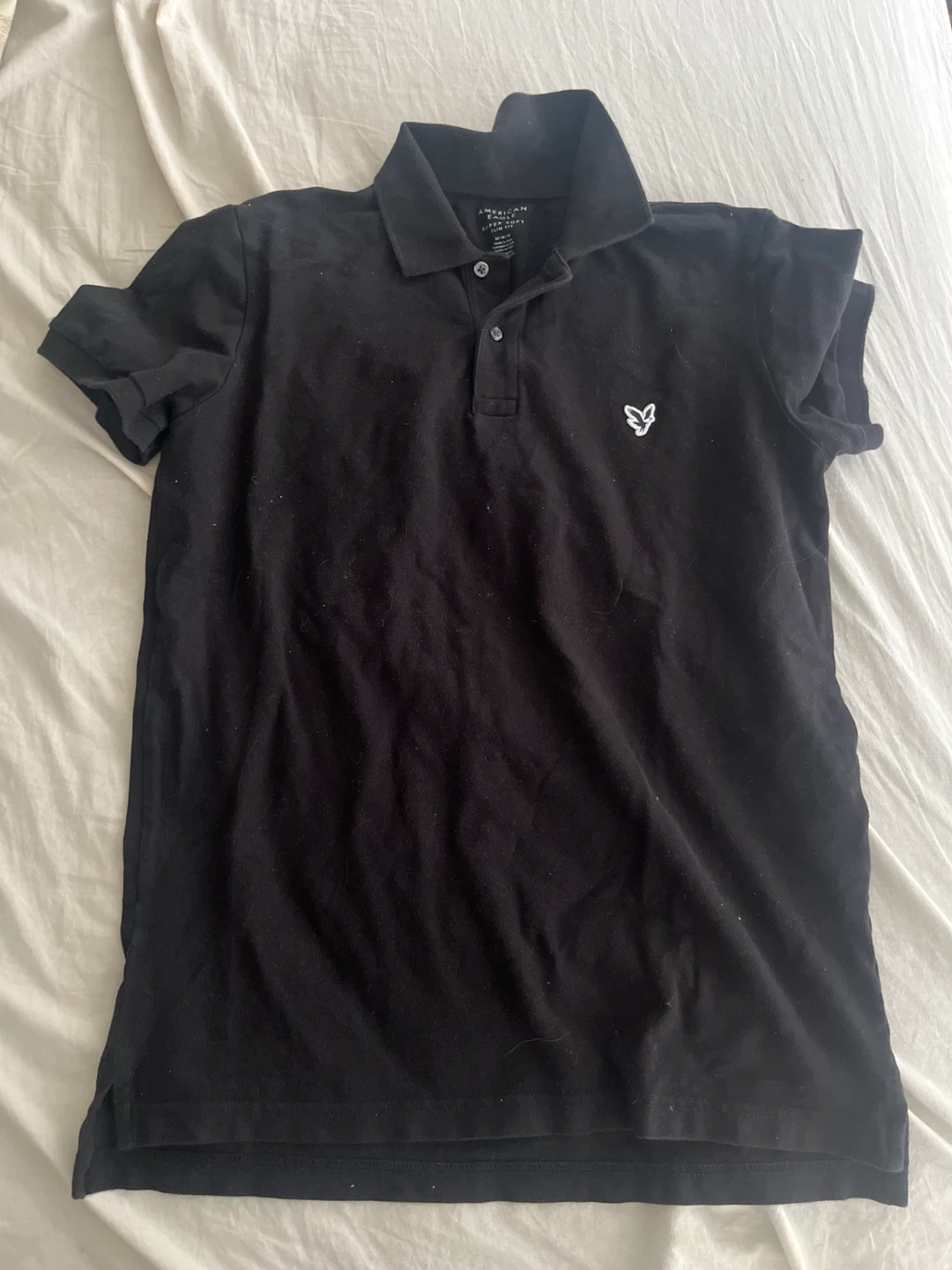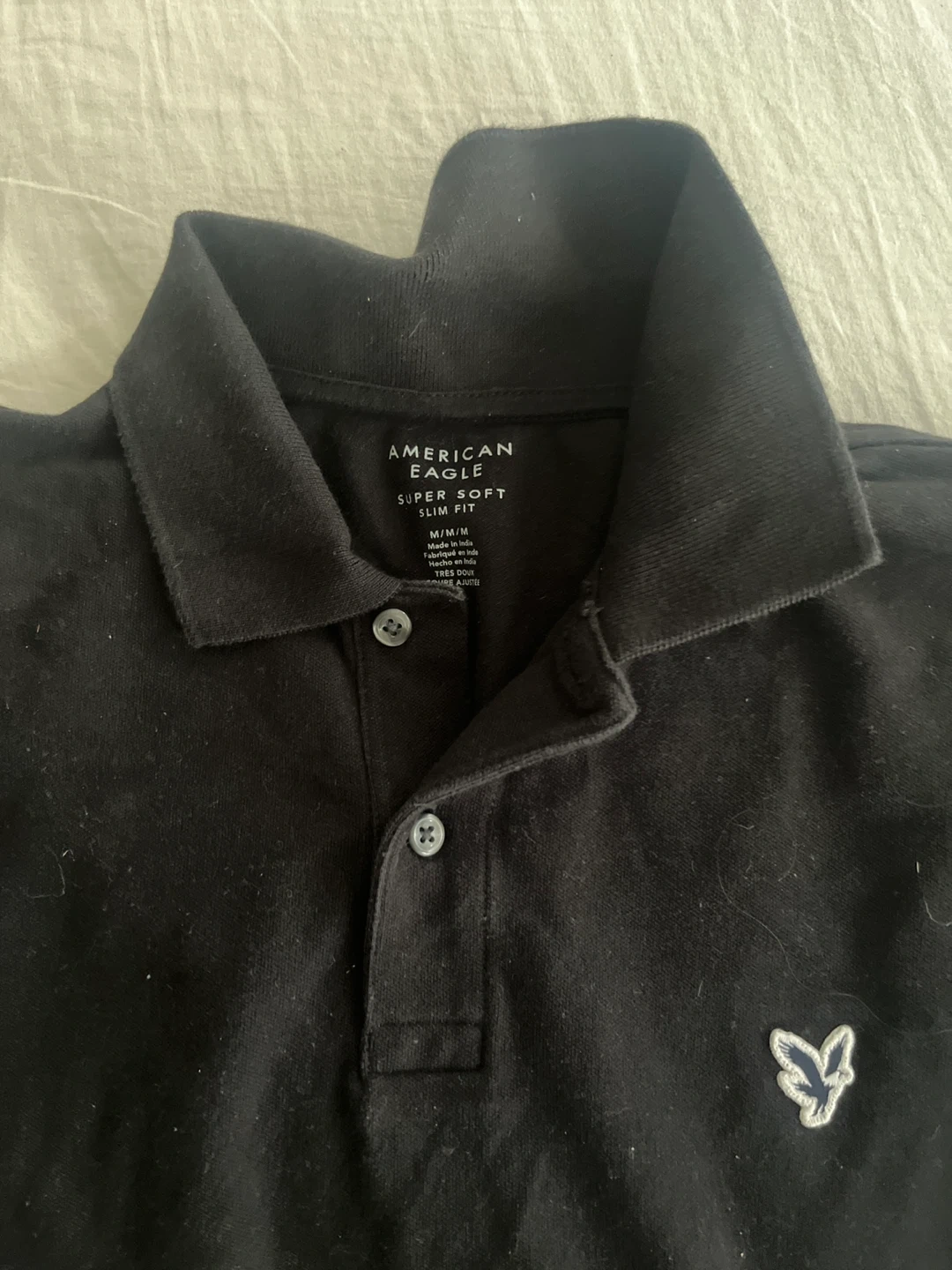 Buy & SellAmerican Eagle Men's Black Slim Fit Polo Shirt - MediumAmerican Eagle Men's Black Slim Fit Polo Shirt - Medium$10This is a men's black polo shirt from American Eagle. It's a size medium and features a slim fit. Made with a super soft fabric.SizeM BrandAmerican EagleWHERE TO MEETCheck LocationView MapSELLERverifiedrachelBay Street Corridor52834 reviews0 chats·0 favorites·9 viewsSEND CHAT TO SELLERHi rachel! I’m interested in your listing.Hi rachel! I’m interested in your listing.Get the Karrot app to chatSign In to chat