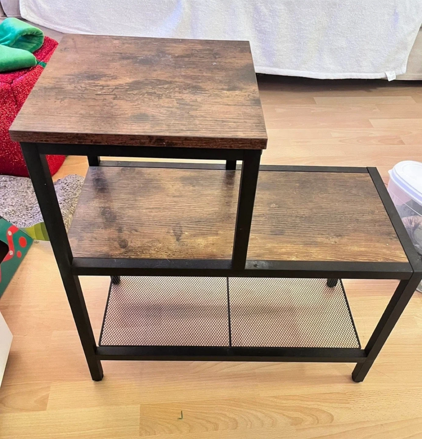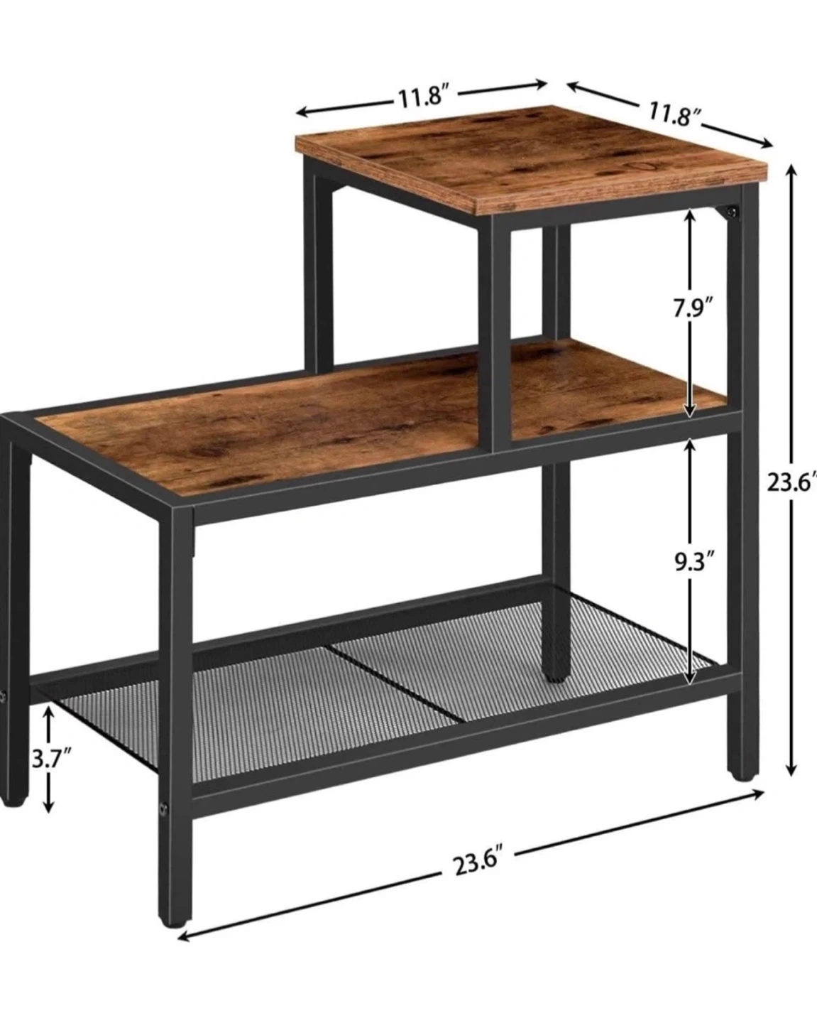 This VASAGLE side table is perfect for adding some rustic charm to your living space. It features a sturdy metal frame and two wooden shelves for storage or display.
