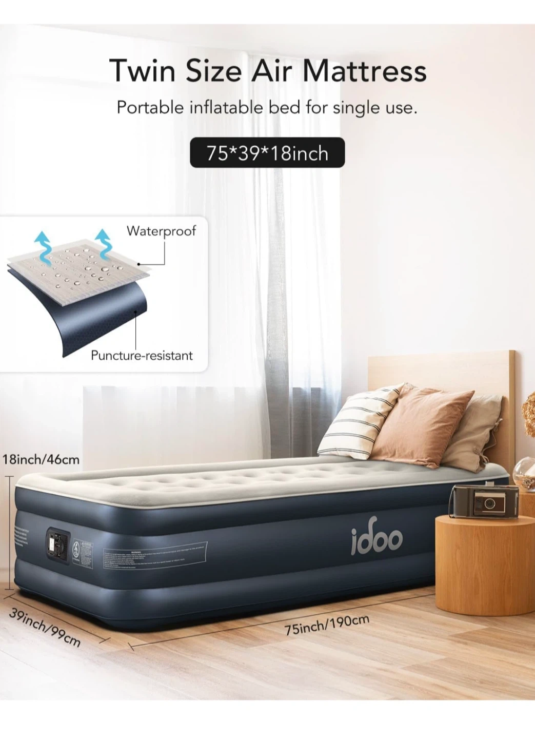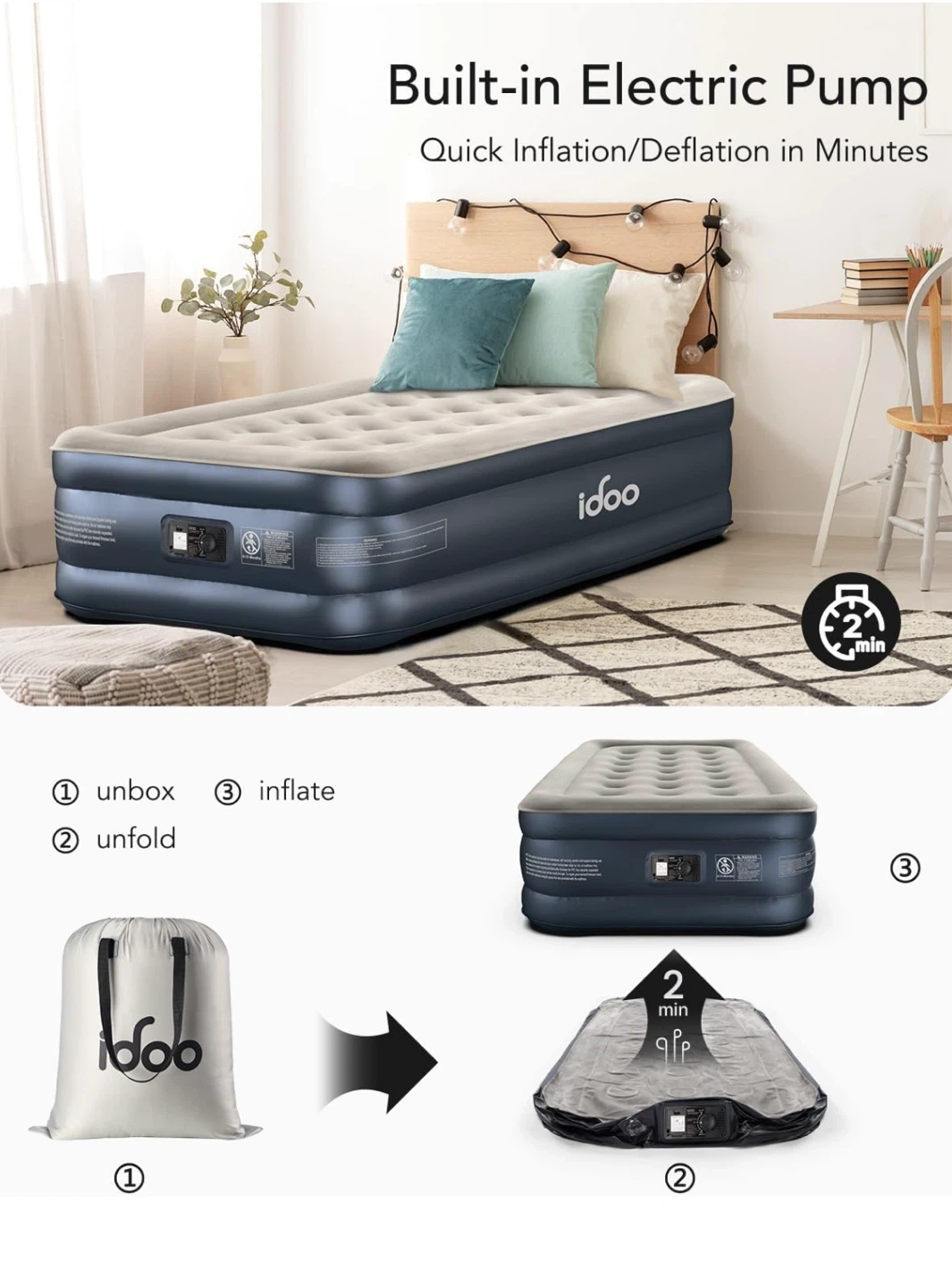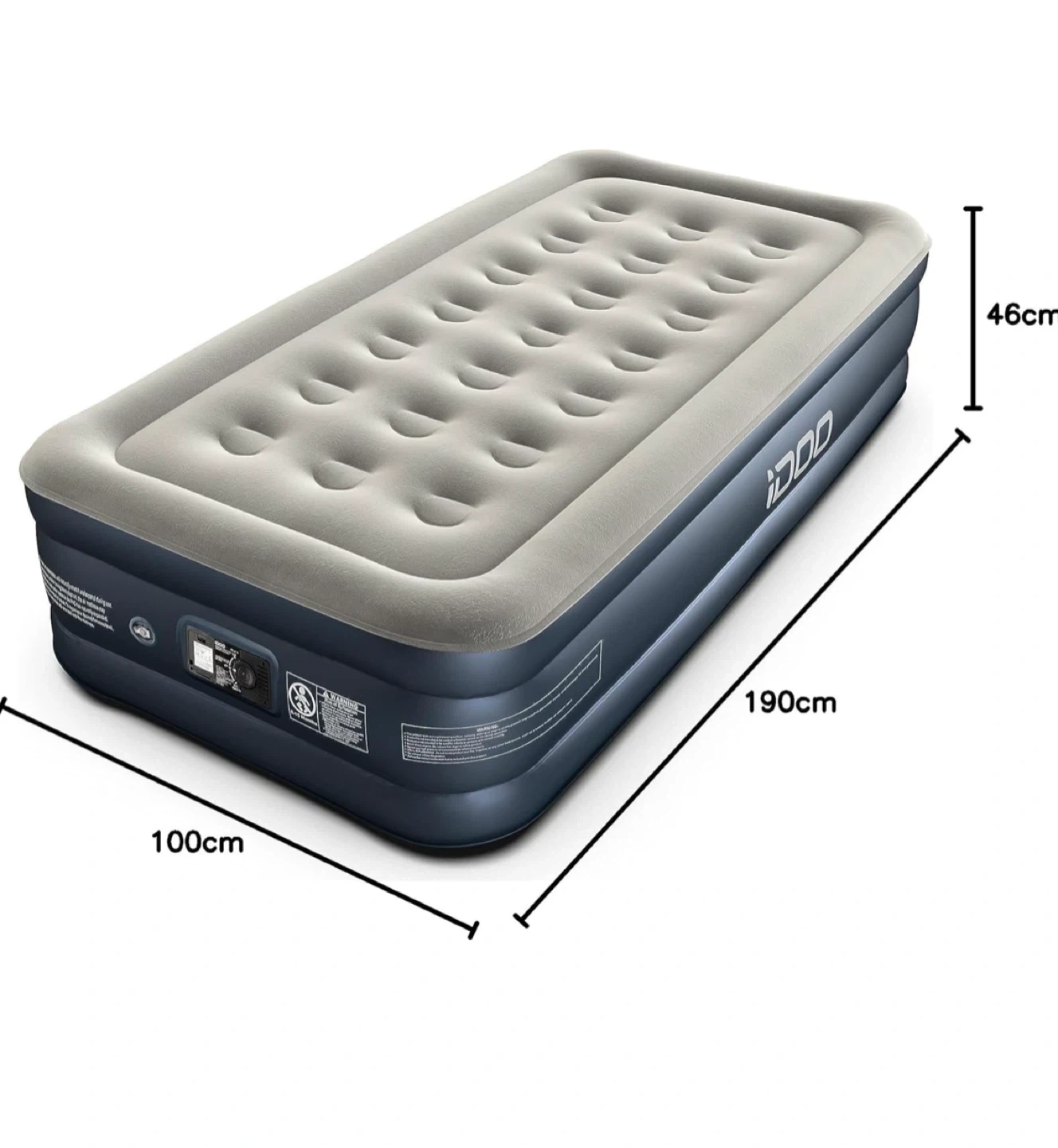 5Looking for a comfy air mattress? This iDOO air mattress features: - All-night comfort and breathability - Enhanced 21 air coils for even and firm weight distribution - Built-in electric pump for quick inflation/deflation in minutes - Dimensions: 190cm x 100cm x 46cm