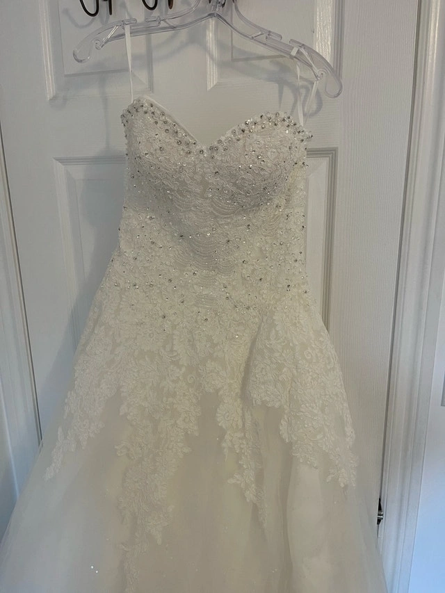 Buy & Sellwedding dresswedding dress$300It fits S/M. Was used only once for a few hours, then washed and kept well in original packaging.WHERE TO MEETCheck LocationView MapSELLERCandiceDon Mills343 reviews0 chats·2 favorites·22 viewsSEND CHAT TO SELLERHi Candice! I’m interested in your listing.Hi Candice! I’m interested in your listing.Get the Karrot app to chatSign In to chat