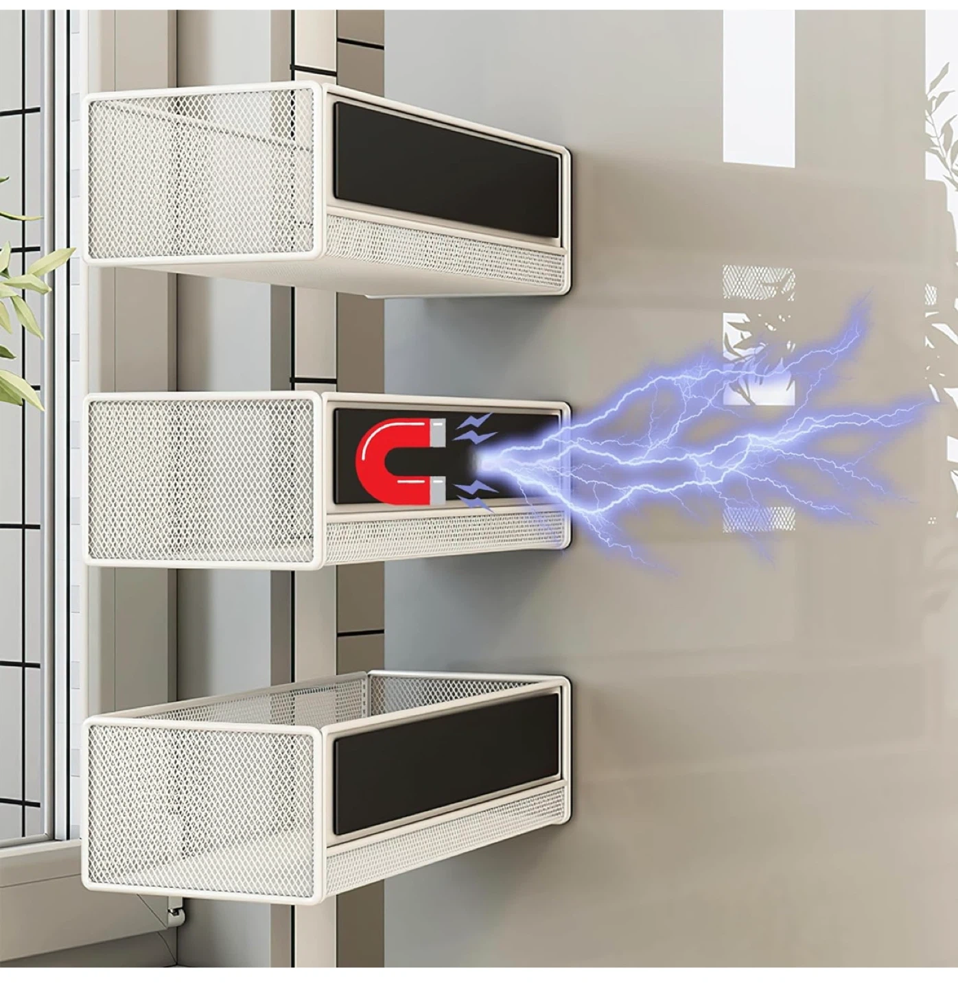 Declutter your fridge with these handy magnetic storage baskets! They come in white and black to match any kitchen decor. The baskets attach easily to your fridge, adding extra storage space for fruits, veggies, or pantry items. Dimensions are approximately 28cm (11in) x 12cm (4.7in) x 7.7cm (3in)