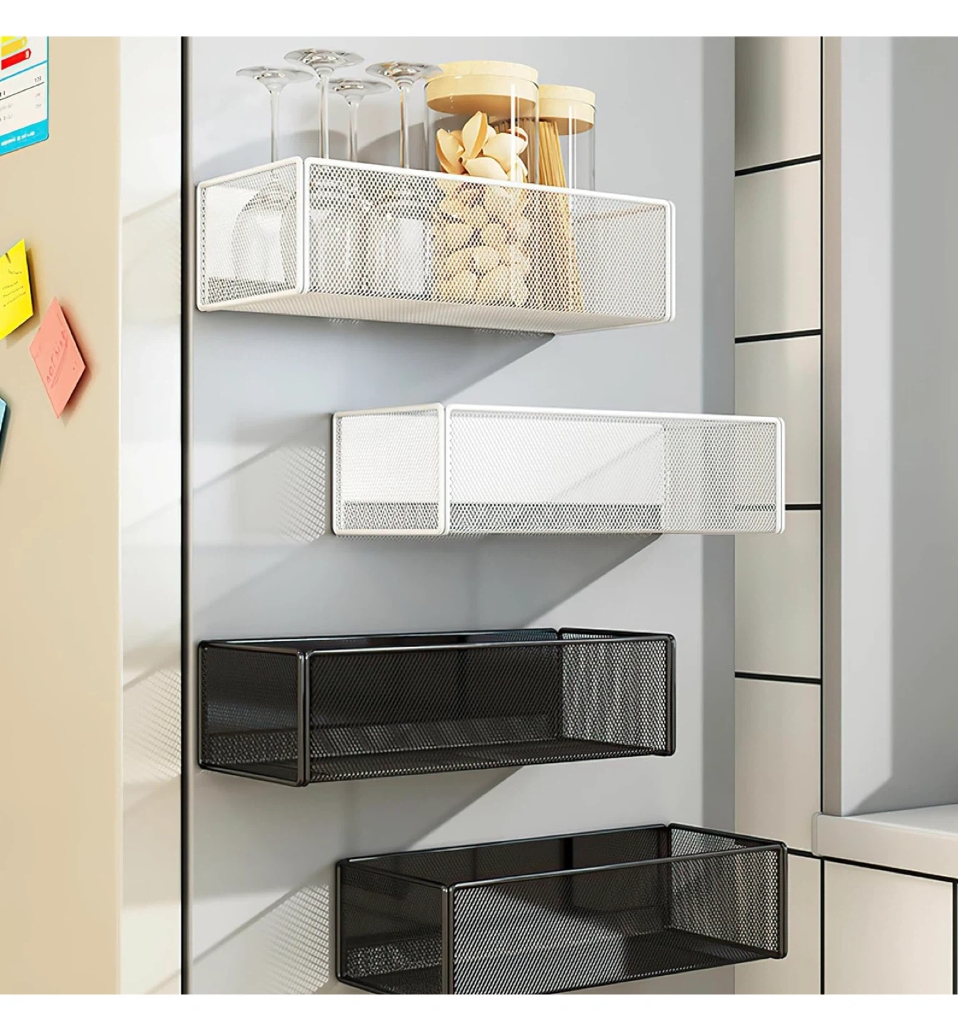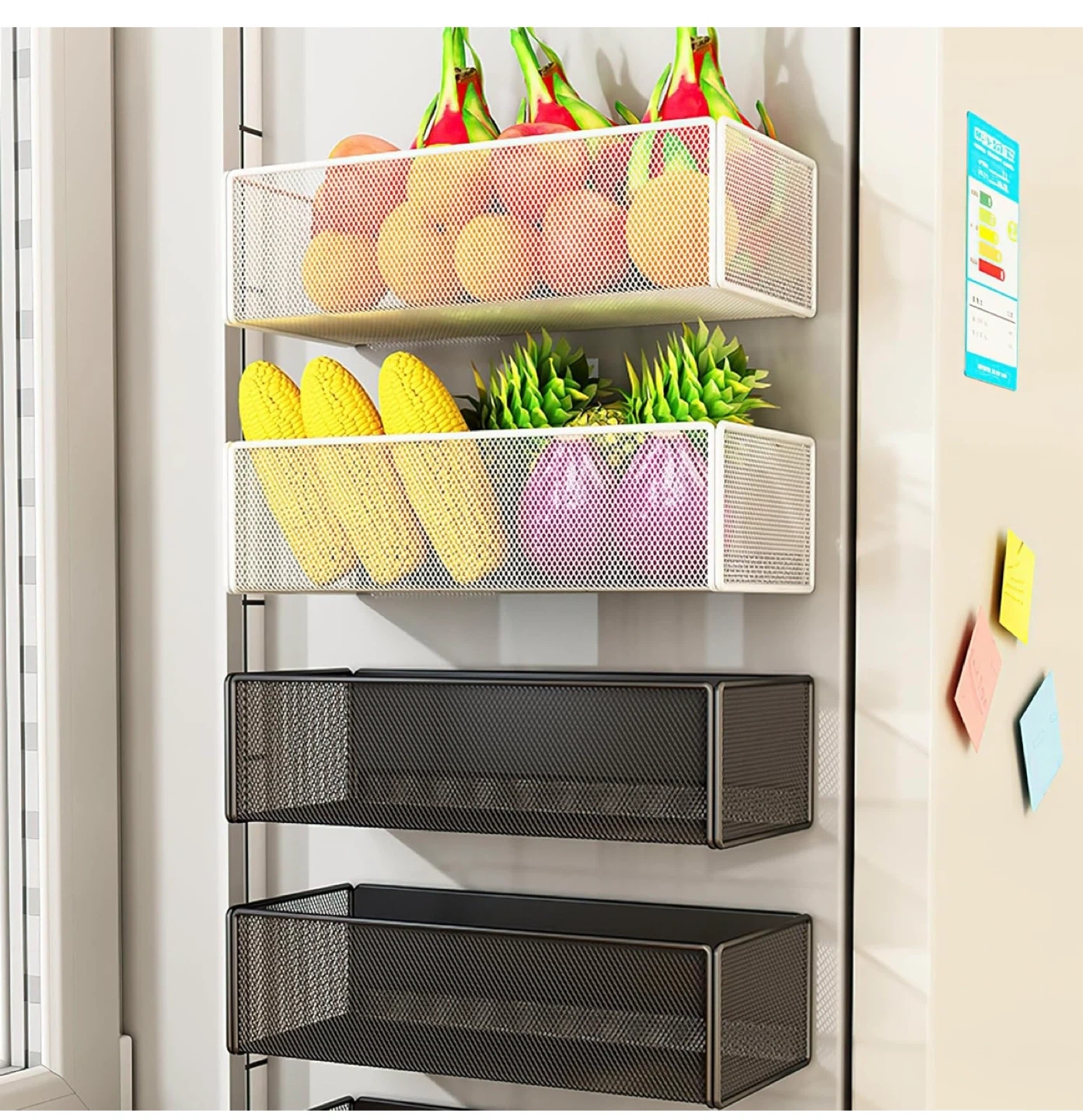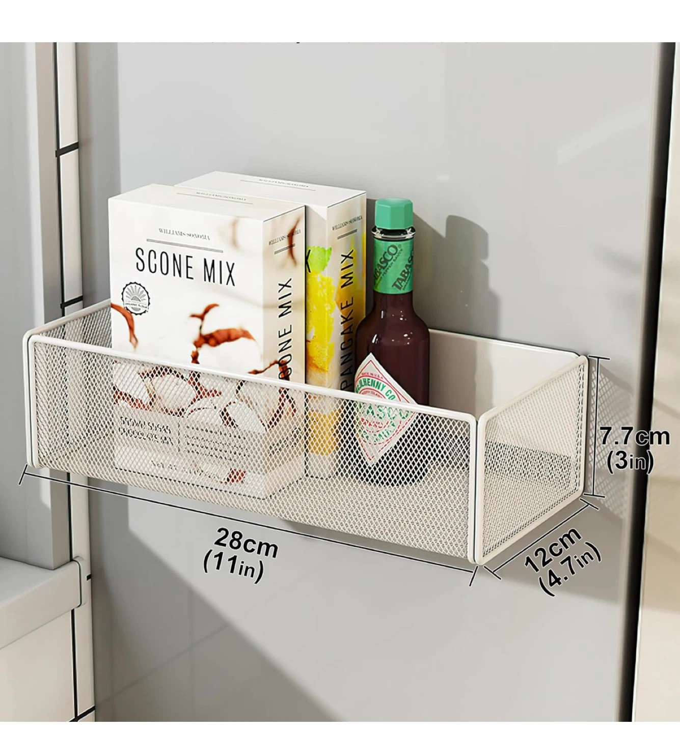 Declutter your fridge with these handy magnetic storage baskets! They come in white and black to match any kitchen decor. The baskets attach easily to your fridge, adding extra storage space for fruits, veggies, or pantry items. Dimensions are approximately 28cm (11in) x 12cm (4.7in) x 7.7cm (3in)