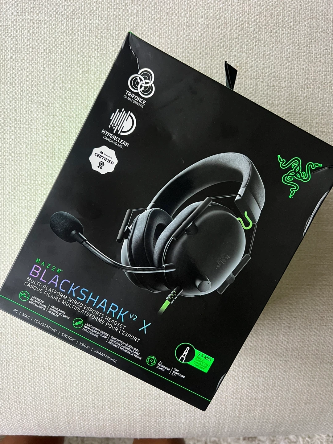 This BRAND NEW AND SEALED Razer Blackshark V2 X headset is designed for esports. It features plush ear cushions and a HyperClear Cardioid microphone for clear communication. It's compatible with PC, Mac, PlayStation, Xbox, and smartphones.