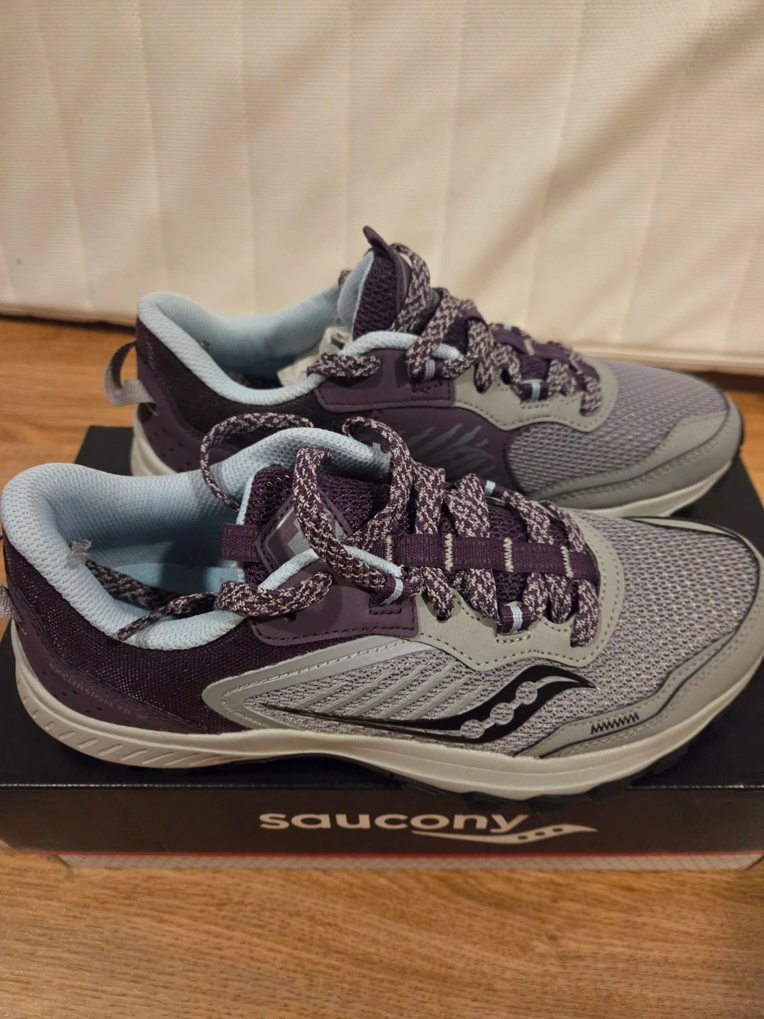 Saucony Excursion TR15 trail running shoes in a grey and mauve colourway. Women's size 8.5. brand new in box!