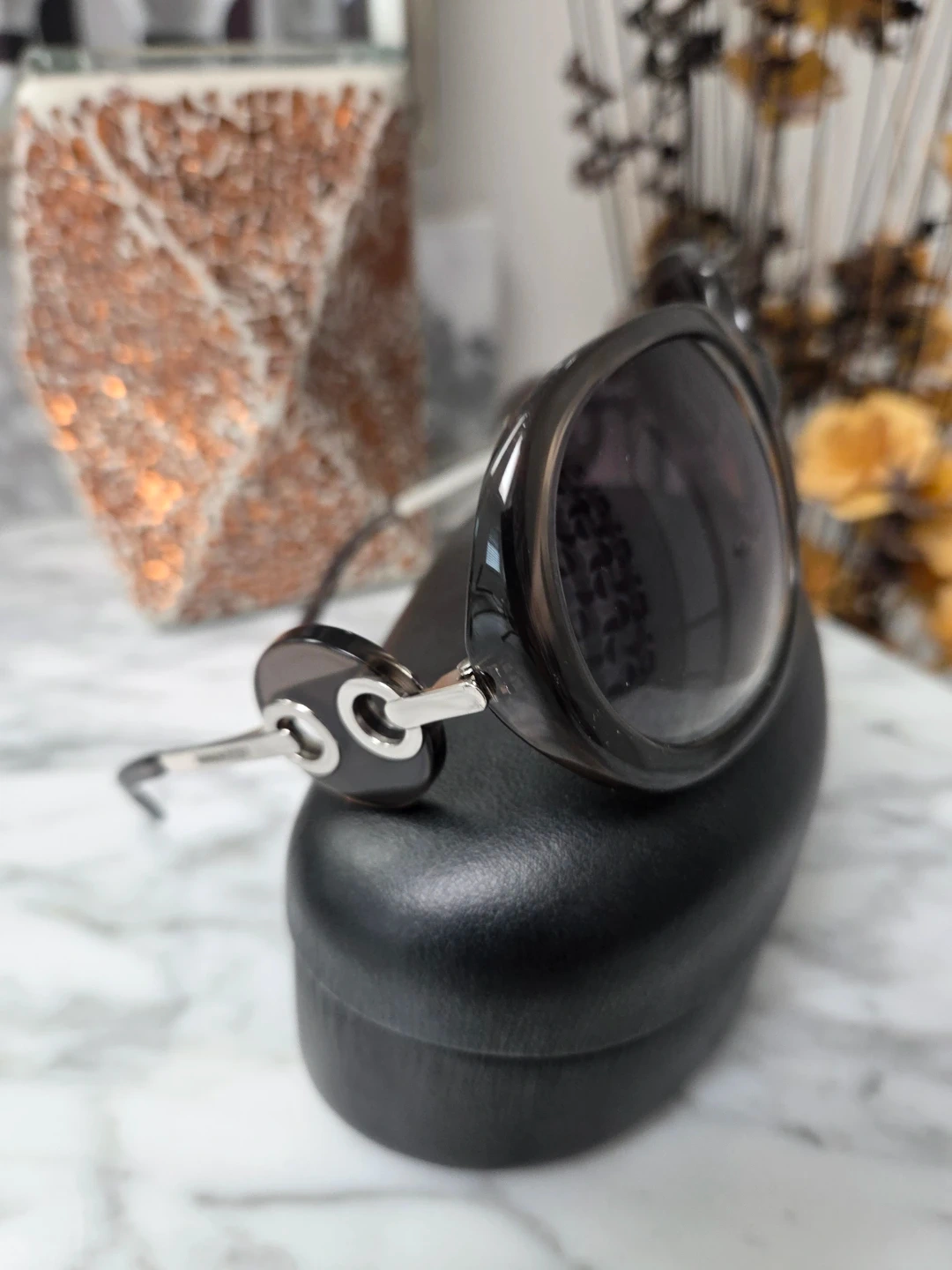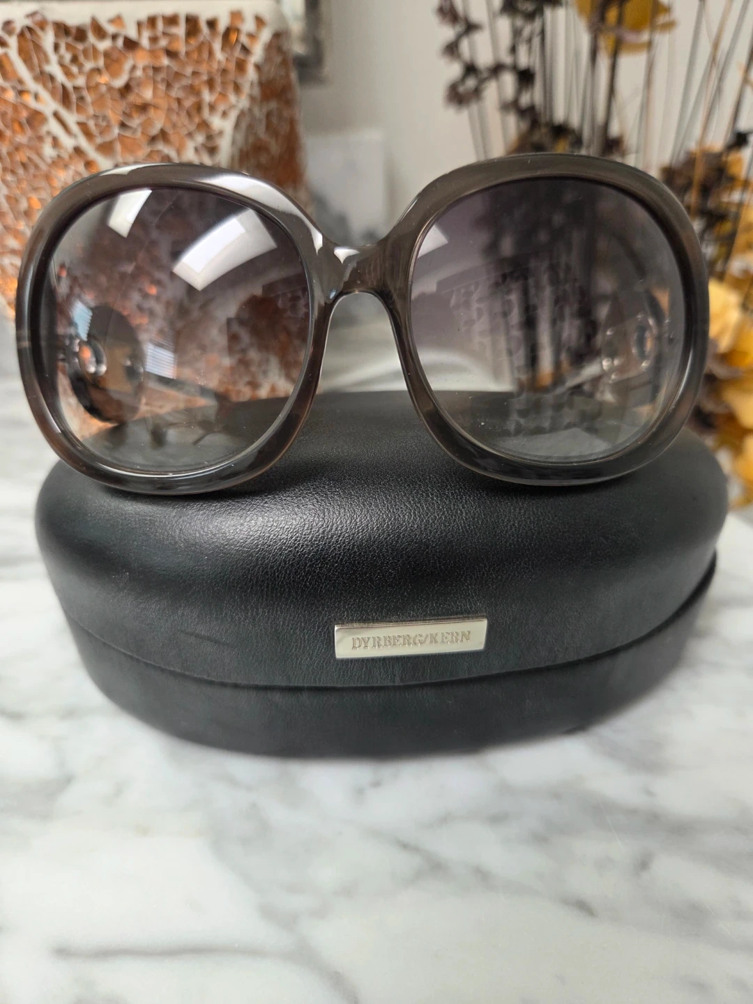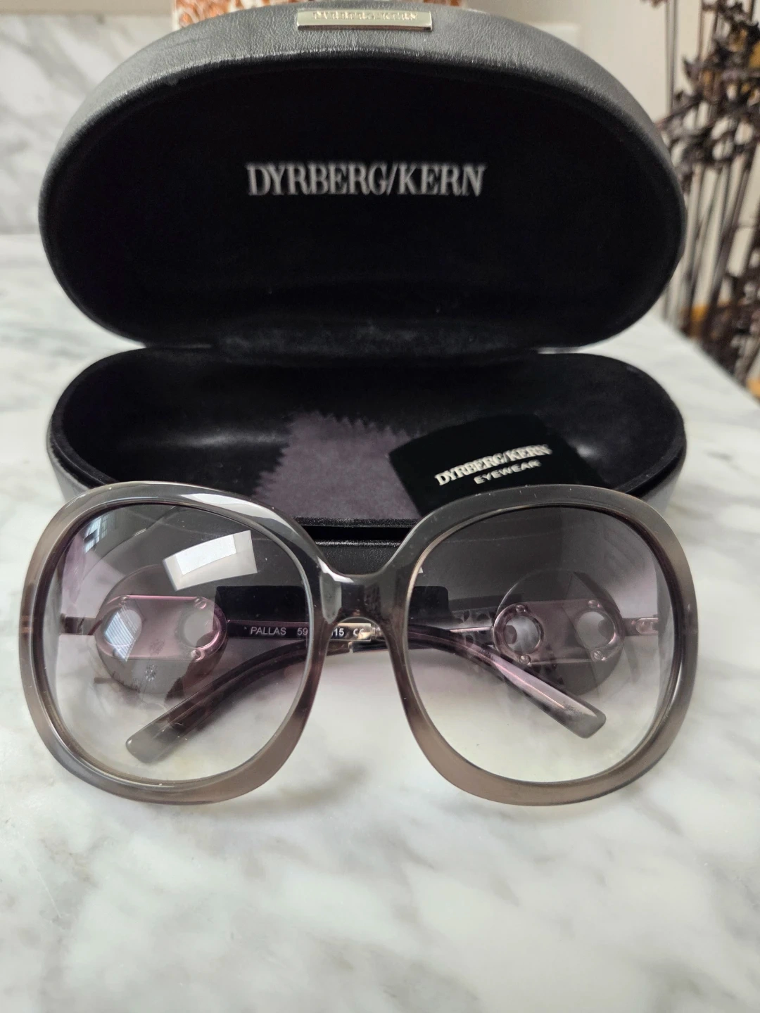 These are Dyrberg/Kern Pallas sunglasses. They come with a protective case and cleaning cloth. Their frames are a classic grey tortoise shell. Fits small 💥