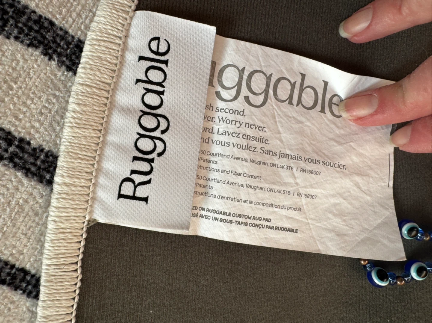 This Ruggable rug features a modern geometric pattern in black and white. It's designed to be machine washable and sits on a non-slip rug pad. This style's washable cover makes upkeep a breeze!
