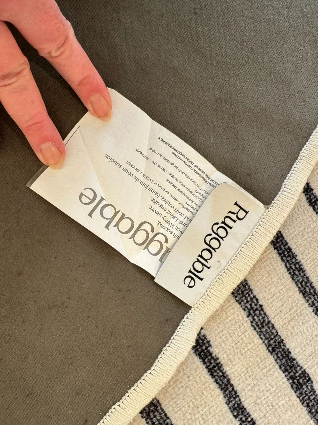 This Ruggable rug features a modern geometric pattern in black and white. It's designed to be machine washable and sits on a non-slip rug pad. This style's washable cover makes upkeep a breeze!