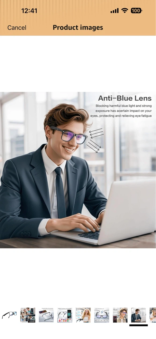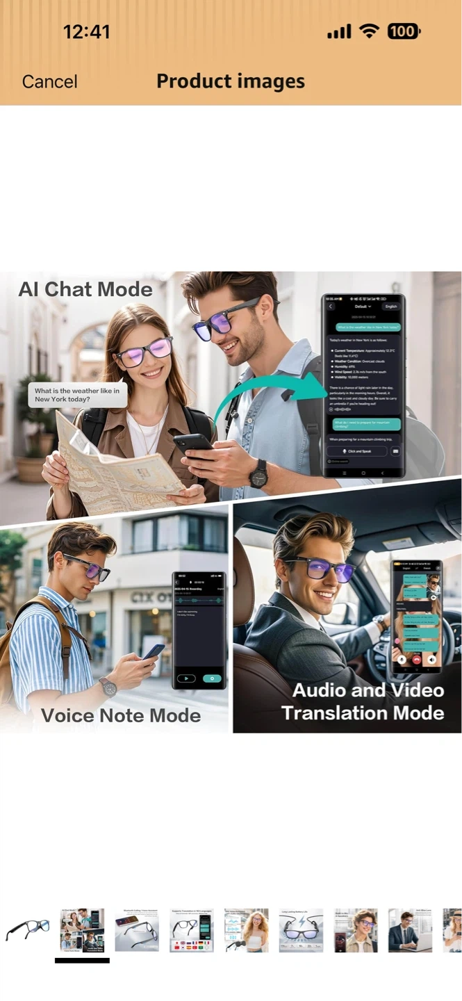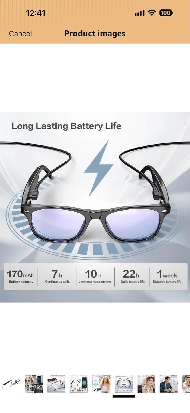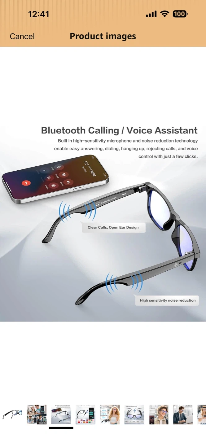 These smart glasses offer ENC noise reduction and HiFi audio with Bluetooth 6.0 connectivity. They support translation in 163 languages with 98% accuracy and have AI chat, voice note, and audio/video translation modes. Features built-in high-sensitivity microphones for clear calls and voice assistant control.