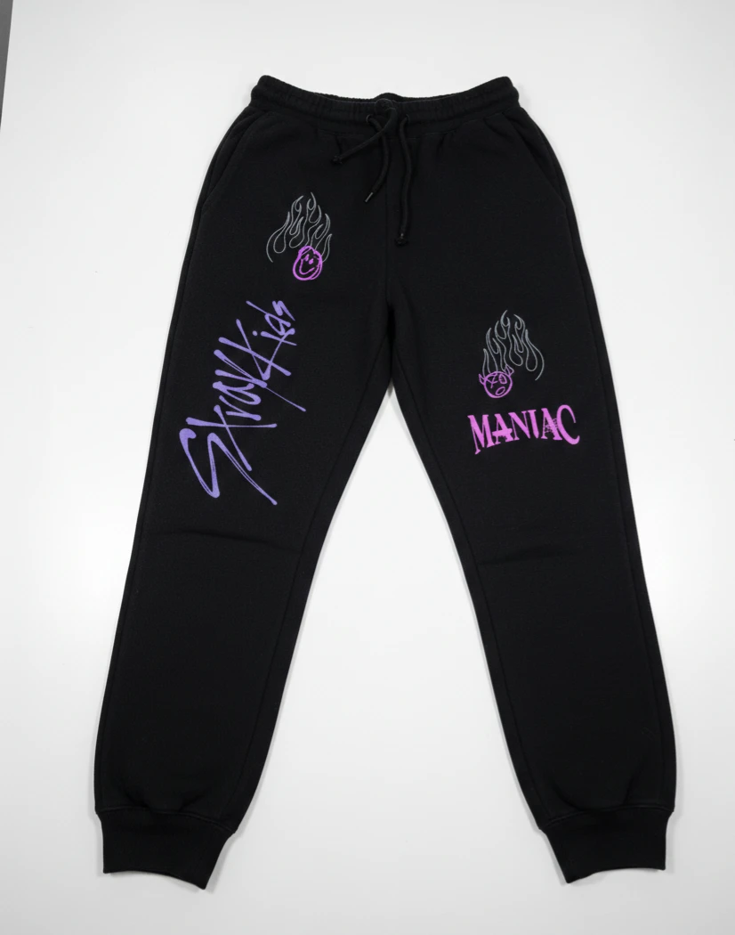 Stray Kids world tour "Maniac" Jogger Pants size XL, BRAND NEW! Black sweatpants with 'Stray Kids' and 'Maniac' graphics. Comfortable fleece lining.