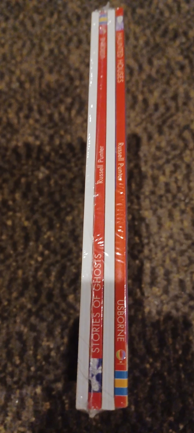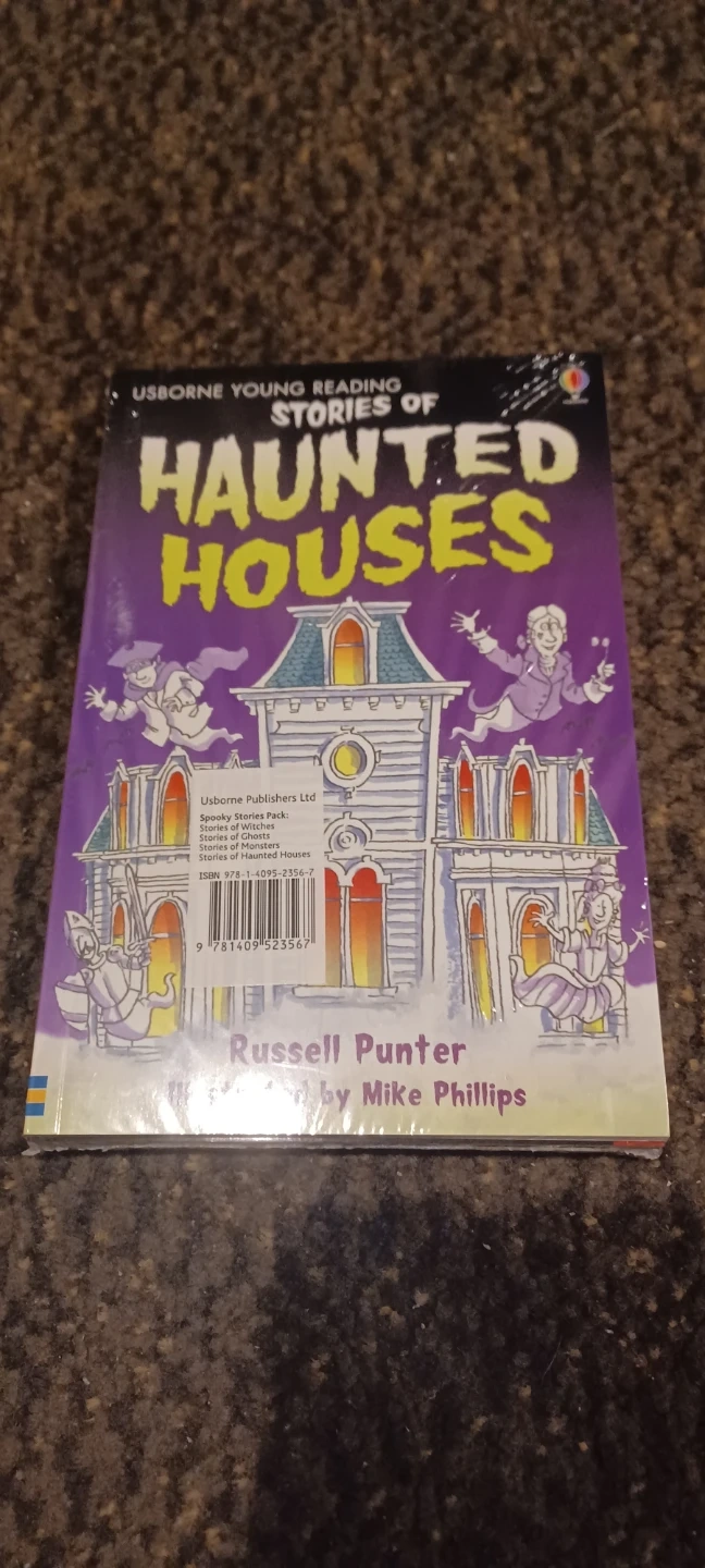 I'm offering a set of 4 Usborne Young Reading books designed for beginner readers. These books include Stories of Haunted Houses, Stories of Ghosts, and Stories of Monsters, story of witchs offering a mix of spooky and engaging tales. The books are brand new having been carefully stored and barely touched.