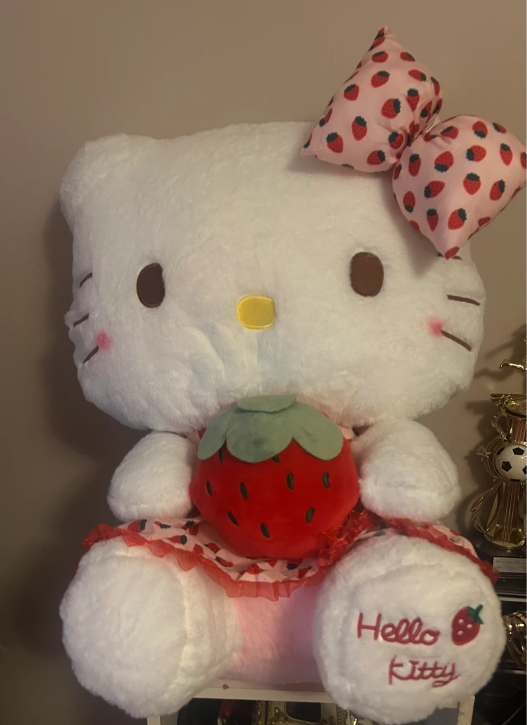 • Featuring Hello Kitty in a strawberry-themed dress and matching bow, holding her big strawberry! 🍓