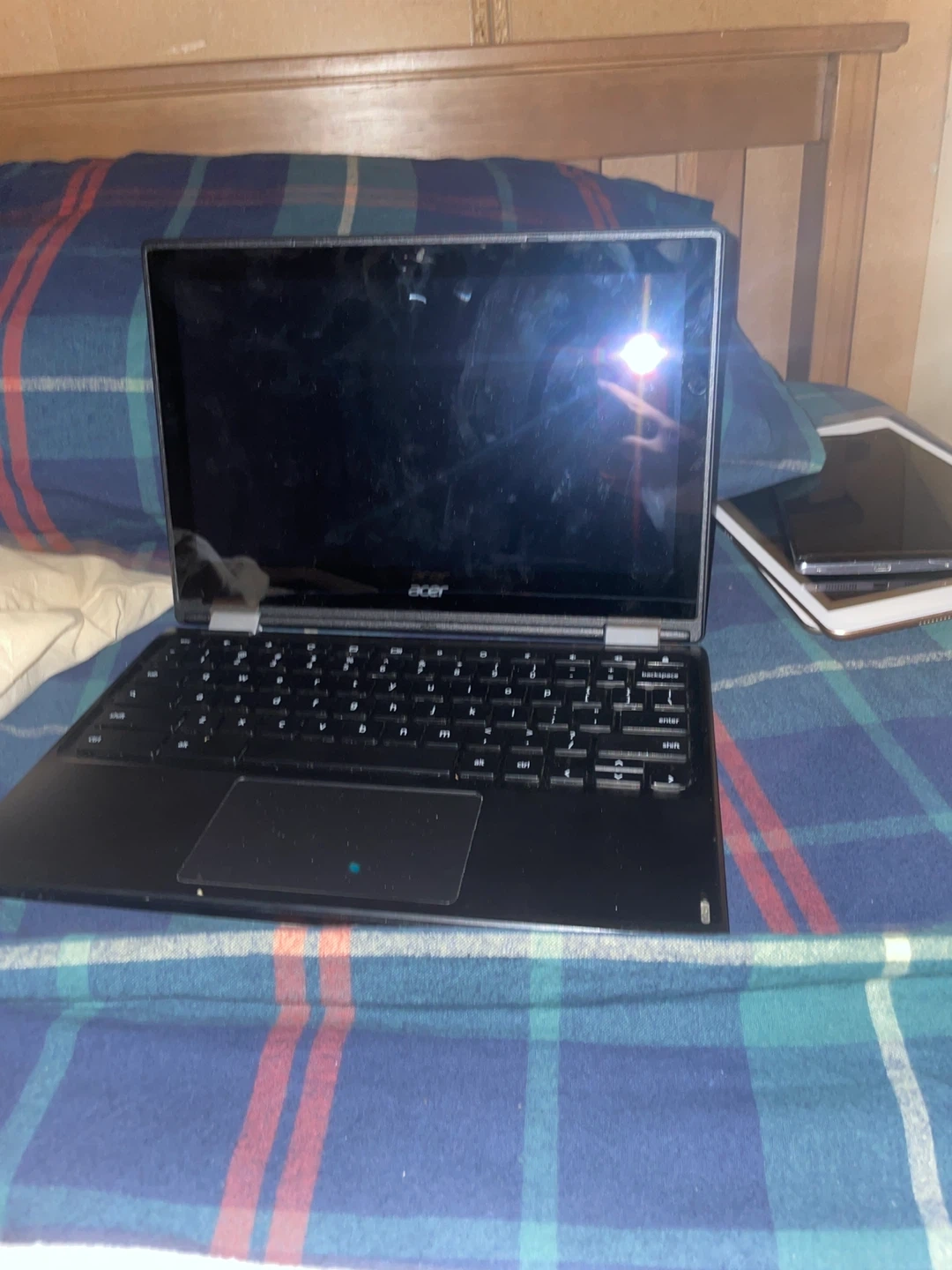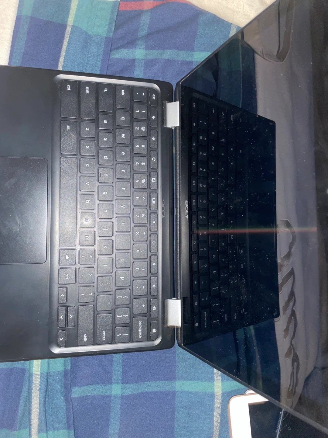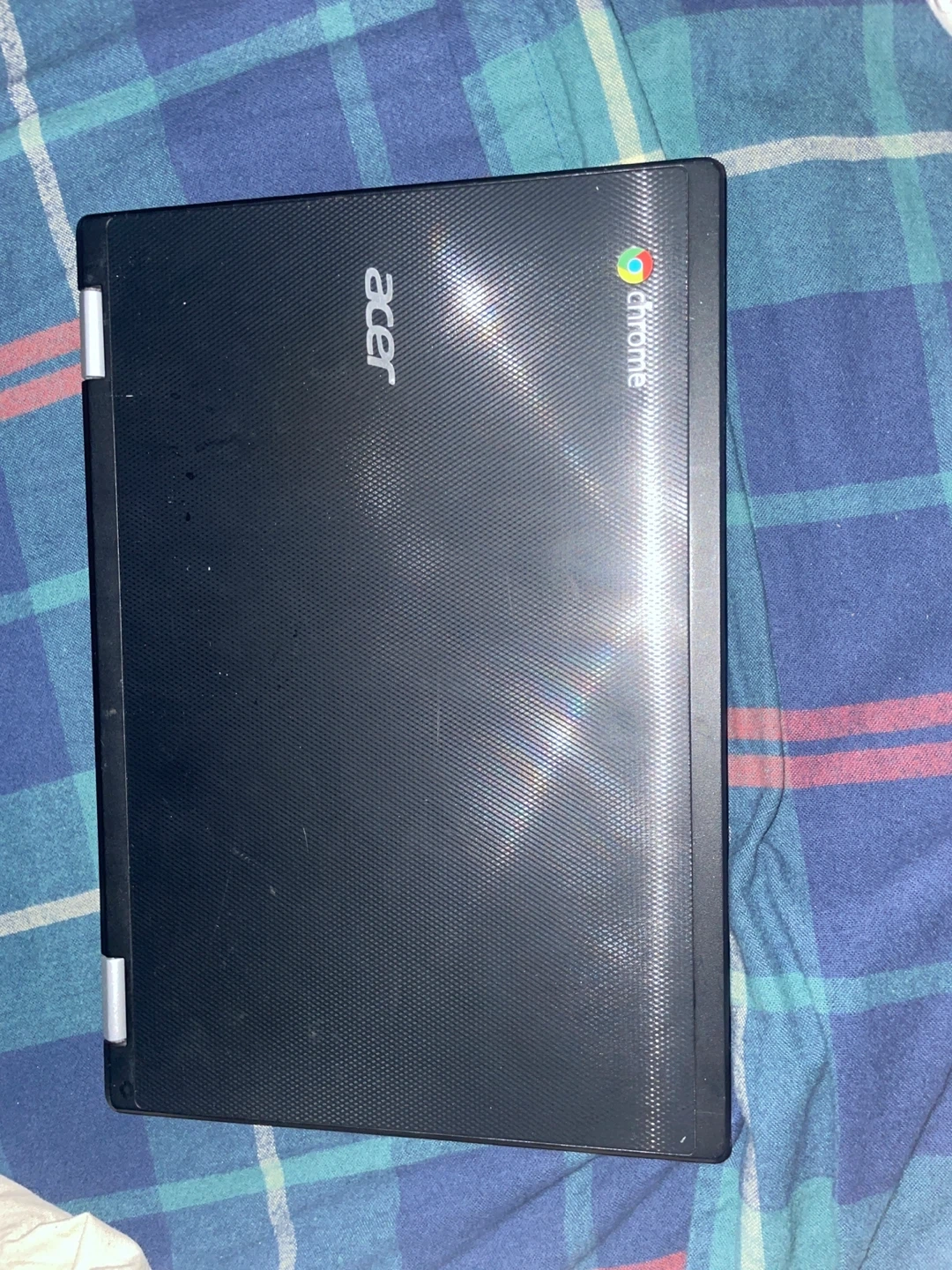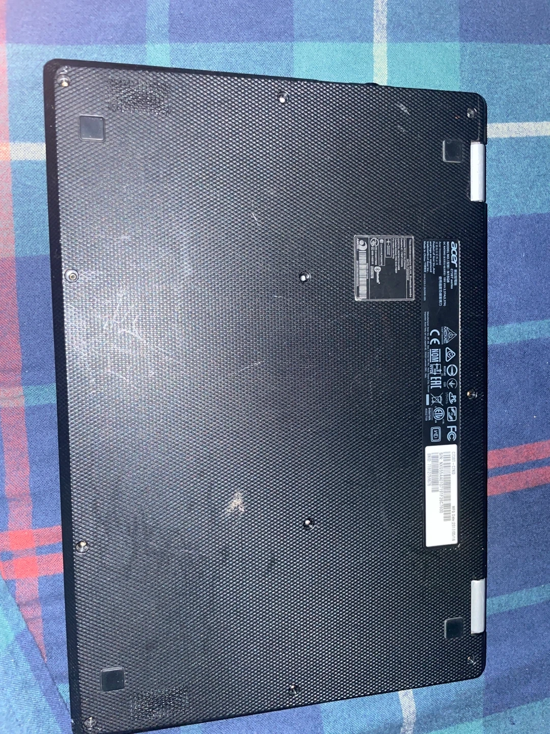 This is an Acer Chromebook Spin 11. It runs on A CUSTOM INSTALLED LINUX NAMED POP! OS. The model is R751T-N14P. It's black and has a keyboard and trackpad. NO CHARGER