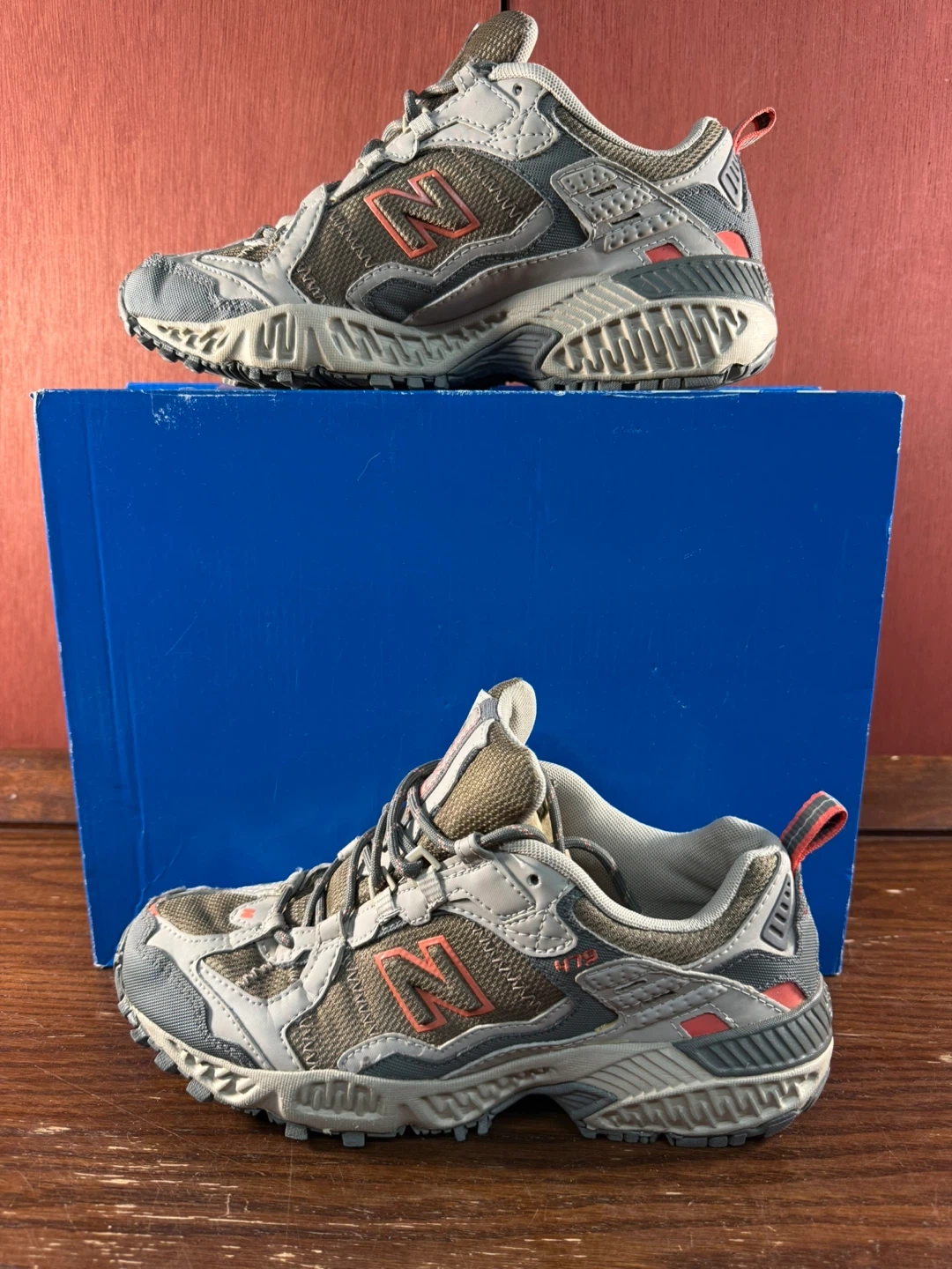 Discover these athletic trail hiking shoes, the New Balance 479, perfect for your outdoor adventures! These shoes, in women's size US 8B, have been lovingly used but still have plenty of life left for hitting the trails. The rugged design and reliable support will keep you steady on any terrain.
