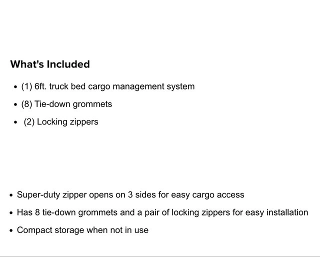 This Ruffsack truck cargo bag is designed to fit a 6ft truck bed and provide a complete enclosure for your cargo. It's made from heavy-duty, weather-resistant polyethylene with a UV-resistant coating to protect your gear from the elements. The super-duty zipper opens on three sides for easy access, and it features eight tie-down grommets and locking zippers for secure installation. This Ruffsack is in excellent condition and ready to keep your cargo safe and dry. A new one retails for $200, but I'm asking $30. Pick-up is at Keele & Beechborough. Cash only.