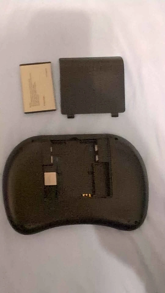 Wireless mini keyboard with a built-in touchpad. Rechargeable battery included. USB charging port. USB cable not included (see USB type needed in last picture).