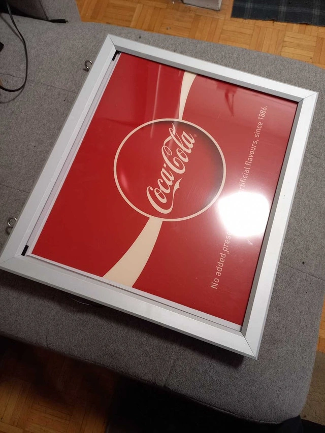 This vintage Coca-Cola sign is a great piece of memorabilia for any collector! Featuring the classic Coca-Cola logo, this sign is in good condition, with some wear that adds to its authentic vintage charm. It is perfect for adding a retro touch to your home, office, or collection. I'm thinking around $75 for this piece of history!
