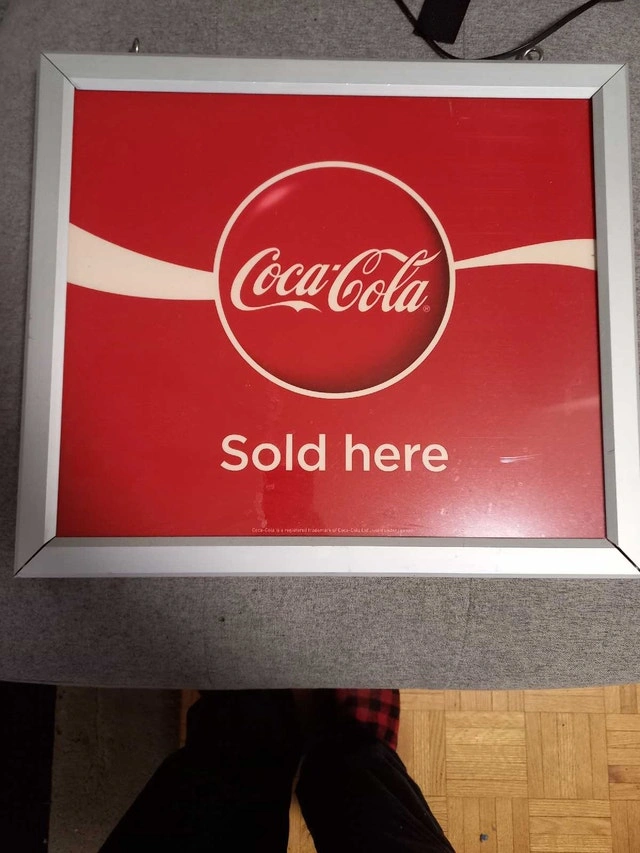 This vintage Coca-Cola sign is a great piece of memorabilia for any collector! Featuring the classic Coca-Cola logo, this sign is in good condition, with some wear that adds to its authentic vintage charm. It is perfect for adding a retro touch to your home, office, or collection. I'm thinking around $75 for this piece of history!