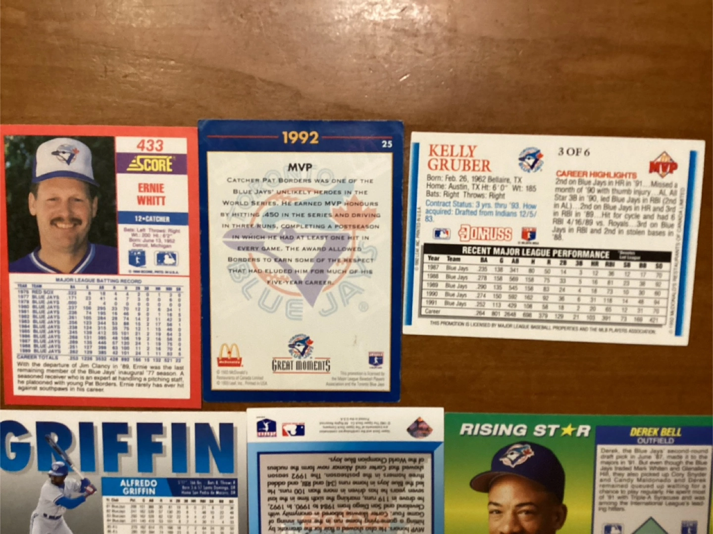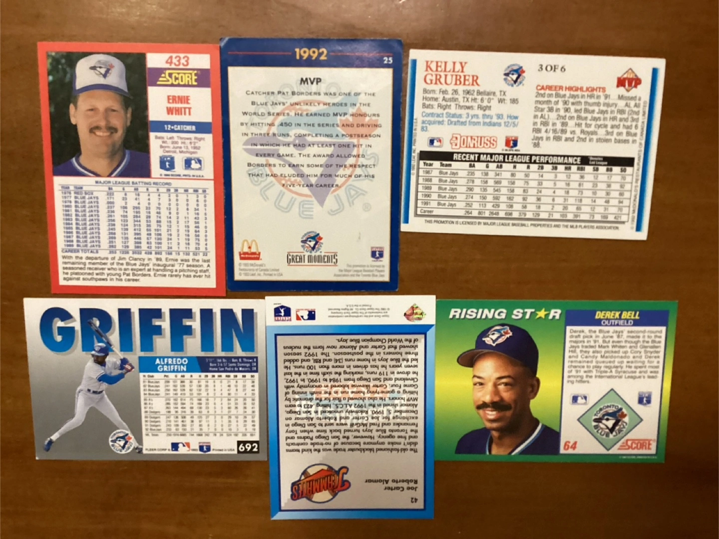 6 WORLD SERIES CHAMPS TORONTO BLUE JAYS Cards