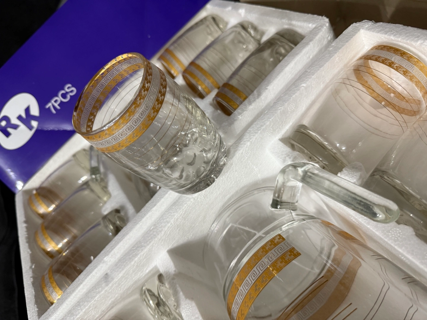 7-Piece Glass Pitcher and Tumbler Set with Gold Accents