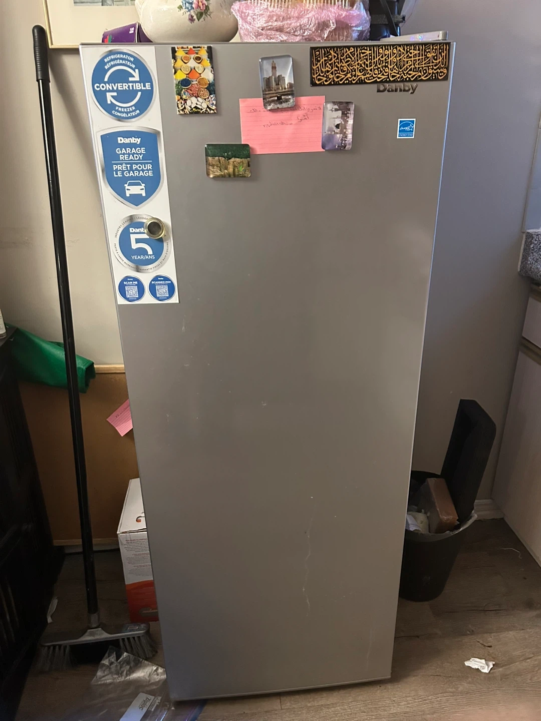 This Danby appliance functions as both a refrigerator and a freezer and is garage-ready. It features a convertible design to suit your needs. It's a 5-year model from Danby.