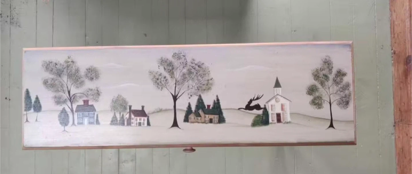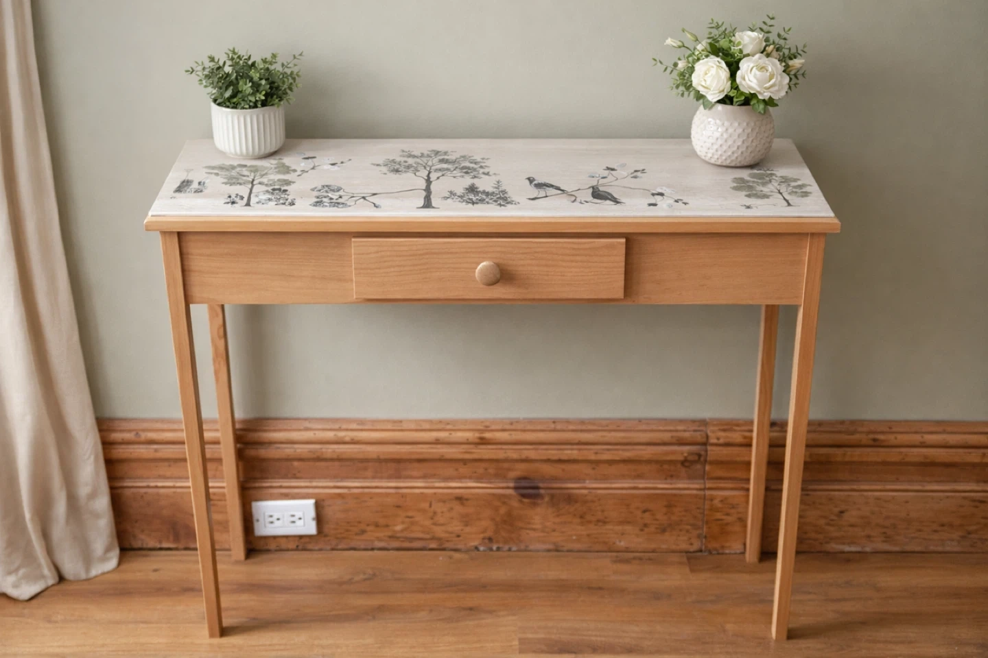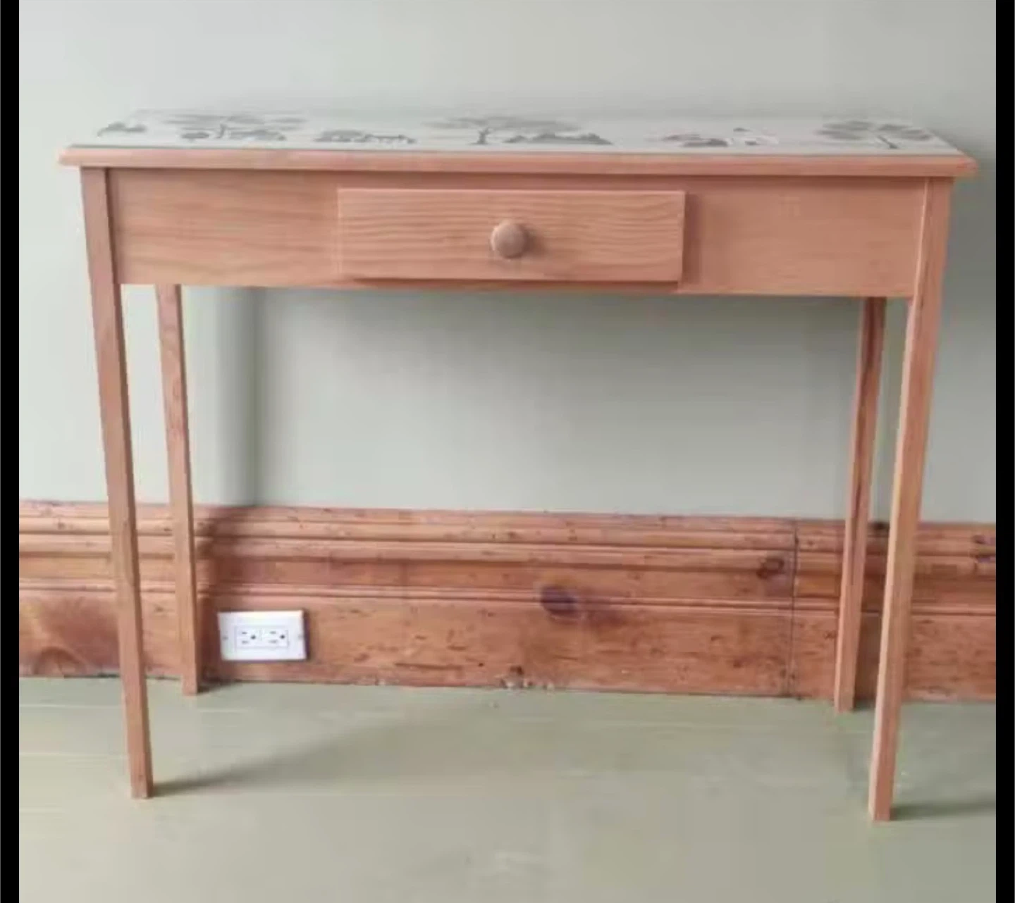 Wooden Console Table with Hand-Painted Top