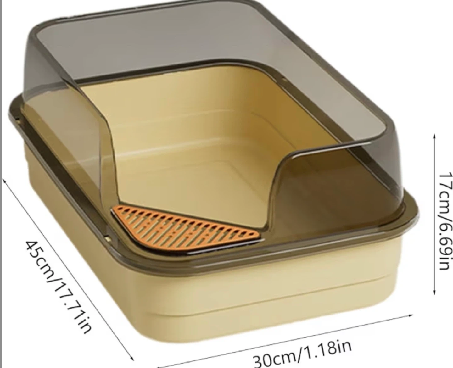 Selling a covered cat litter box! It's in great condition and ready for a new home for your furry friend. The dimensions are approximately 17.71 inches x 11.81 inches.