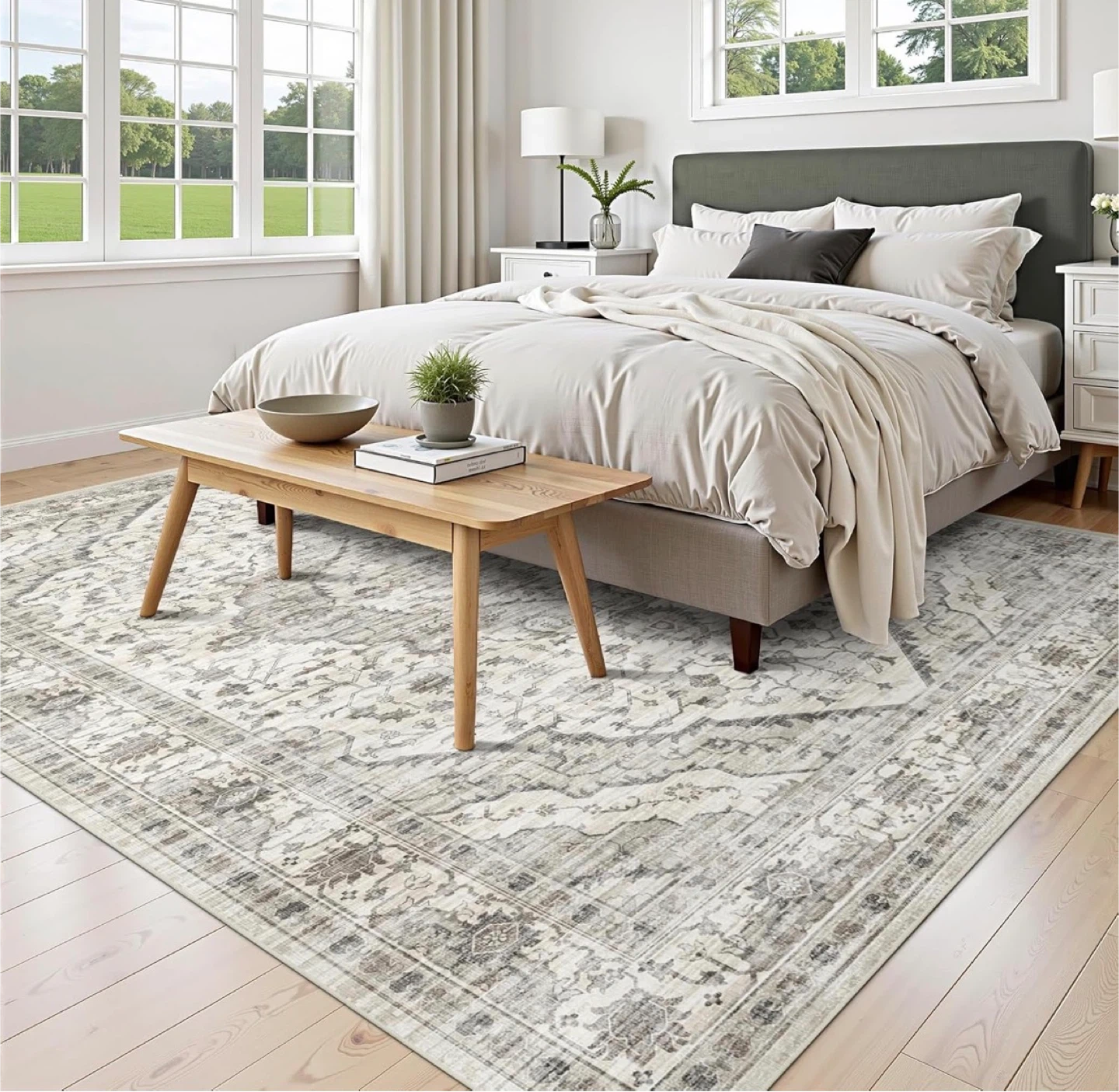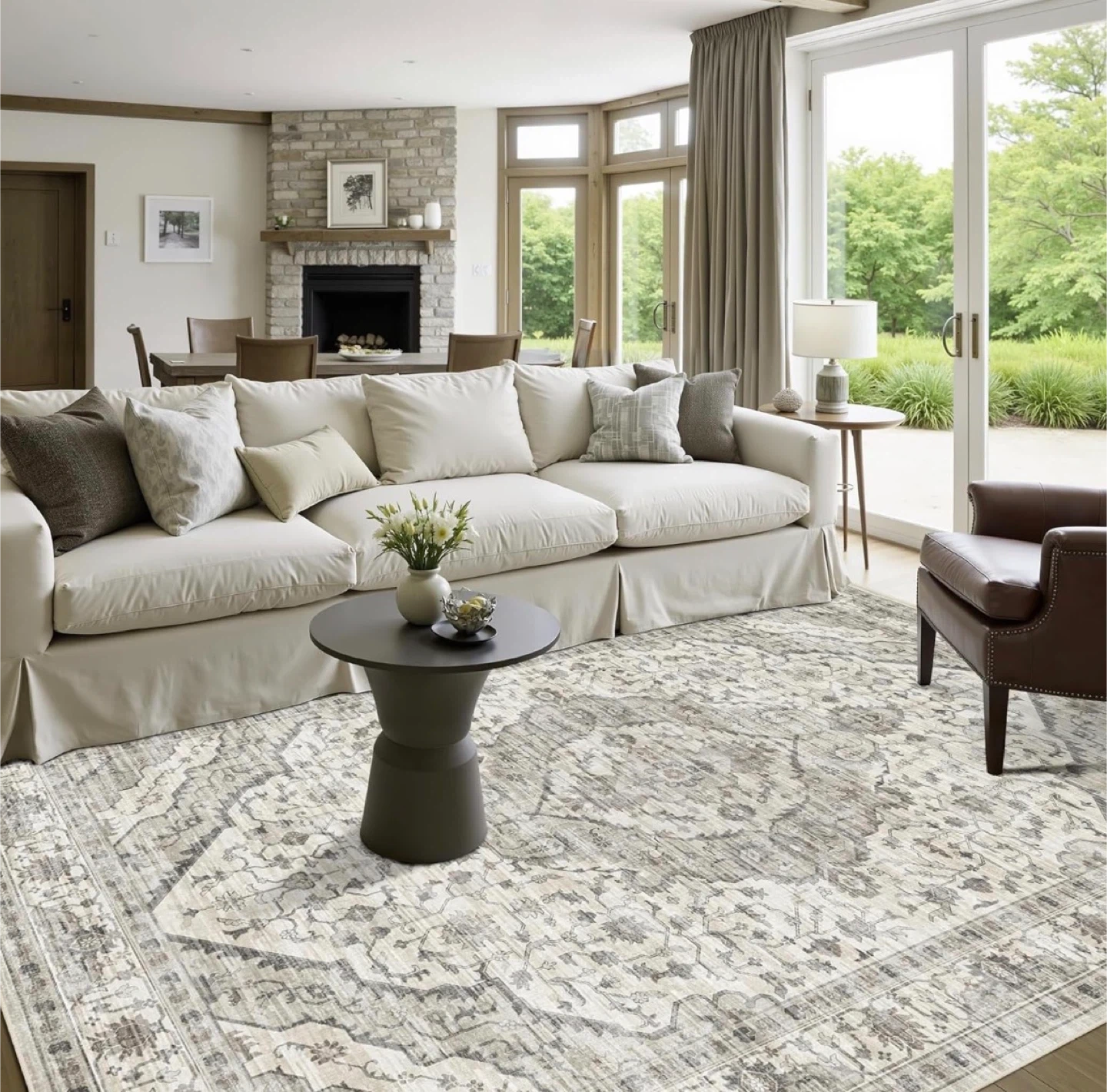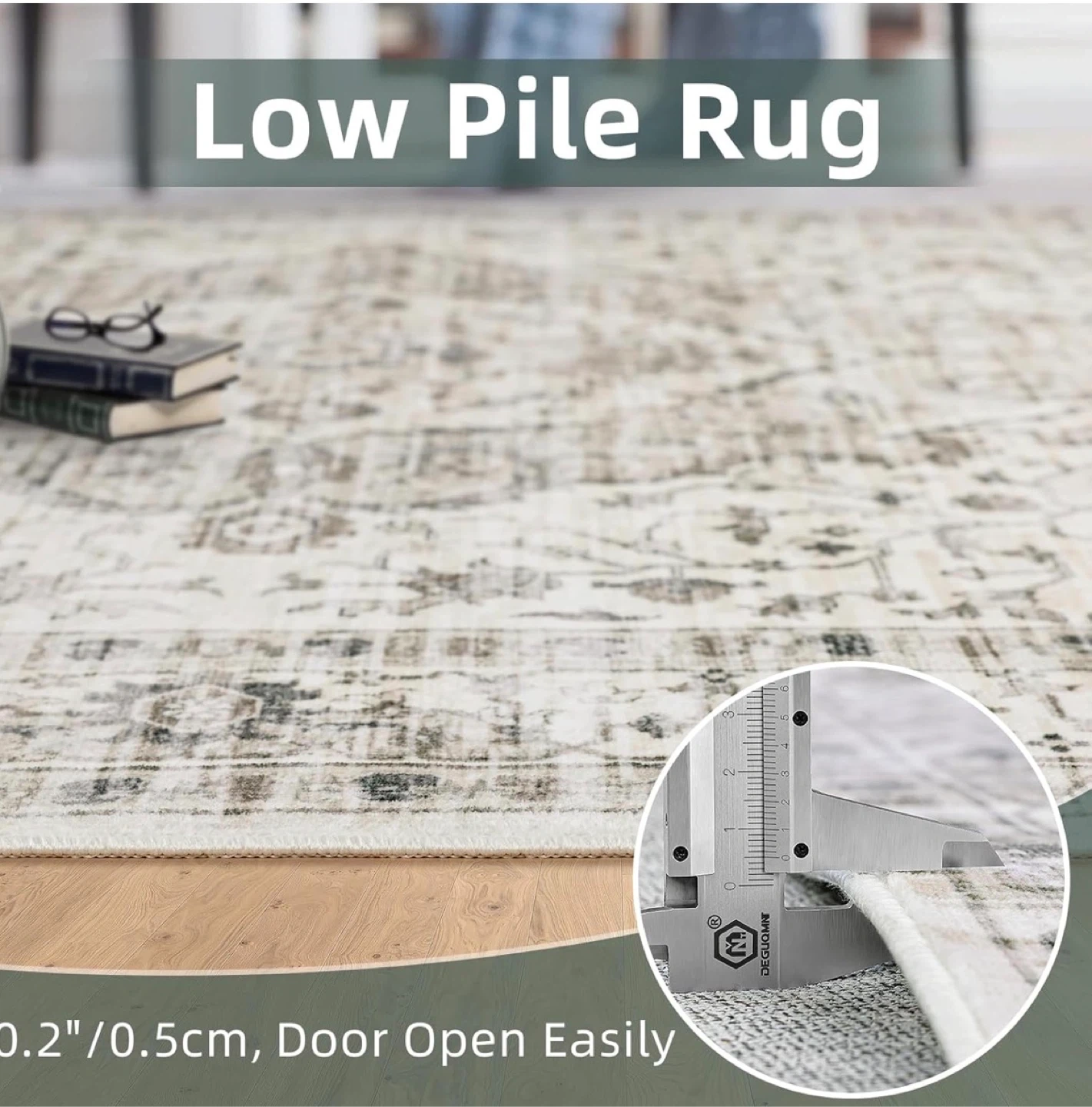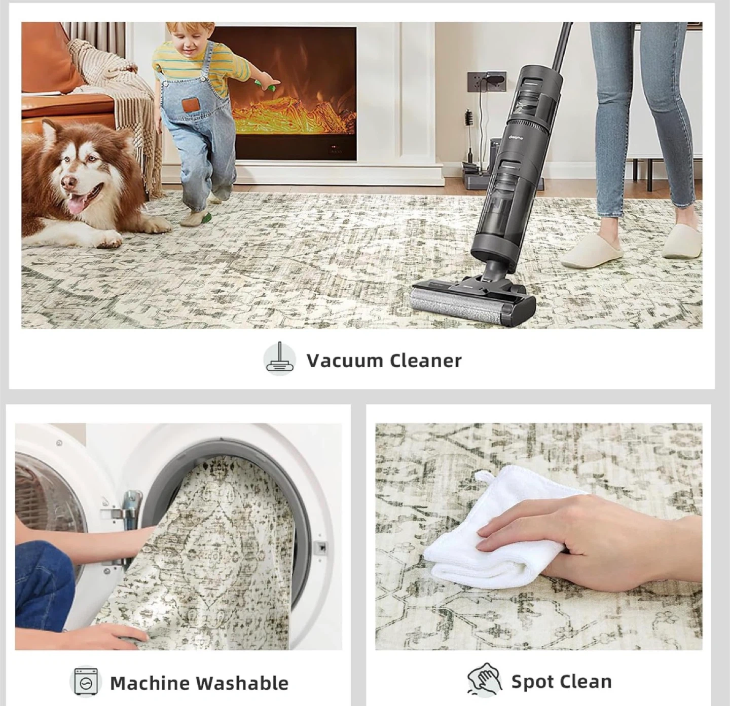 This 5' x 7' area rug has a soft surface and durable edge with reinforced stitching. It features a non-slip backing and is machine washable. Spot clean for easy care!