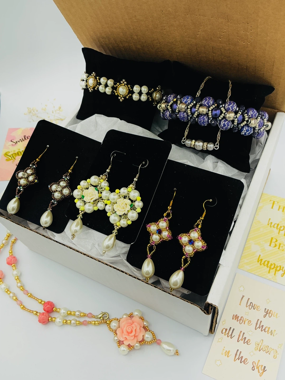 Handmade jewelry gift boxes in a variety of fun themes. Each box is curated and packaged as a ready-to-gift set.