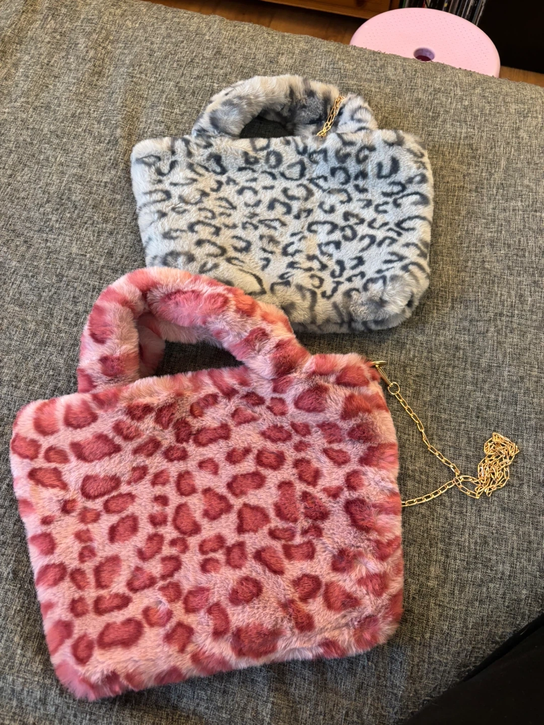 Faux Fur Leopard Print Handbags (Pink & Grey)