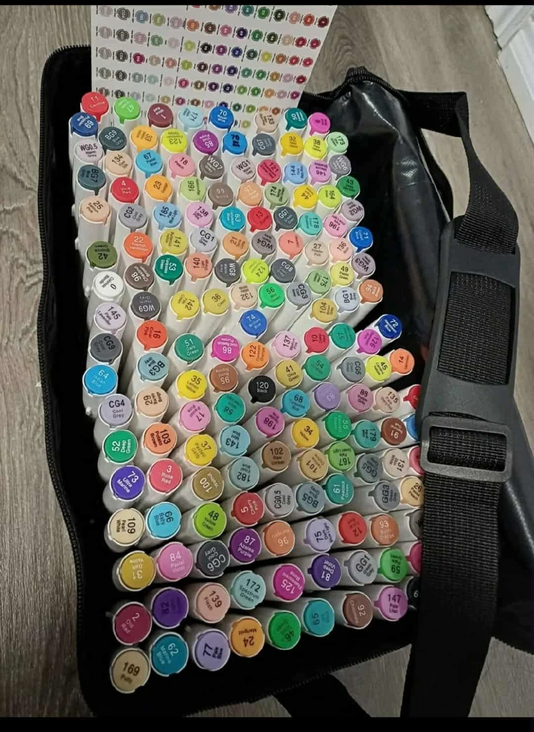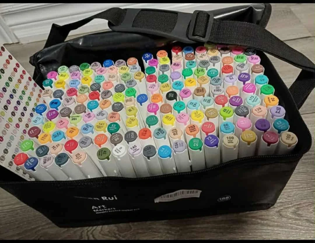 Selling a set of Chen Rui art markers, which comes with 168 different colours! These are double-ended marker pens witb vibrant colors. Perfect for artists, hobbyists, or anyone who enjoys colouring and drawing. Comes in a convenient carrying case to keep everything organized and easy to transport