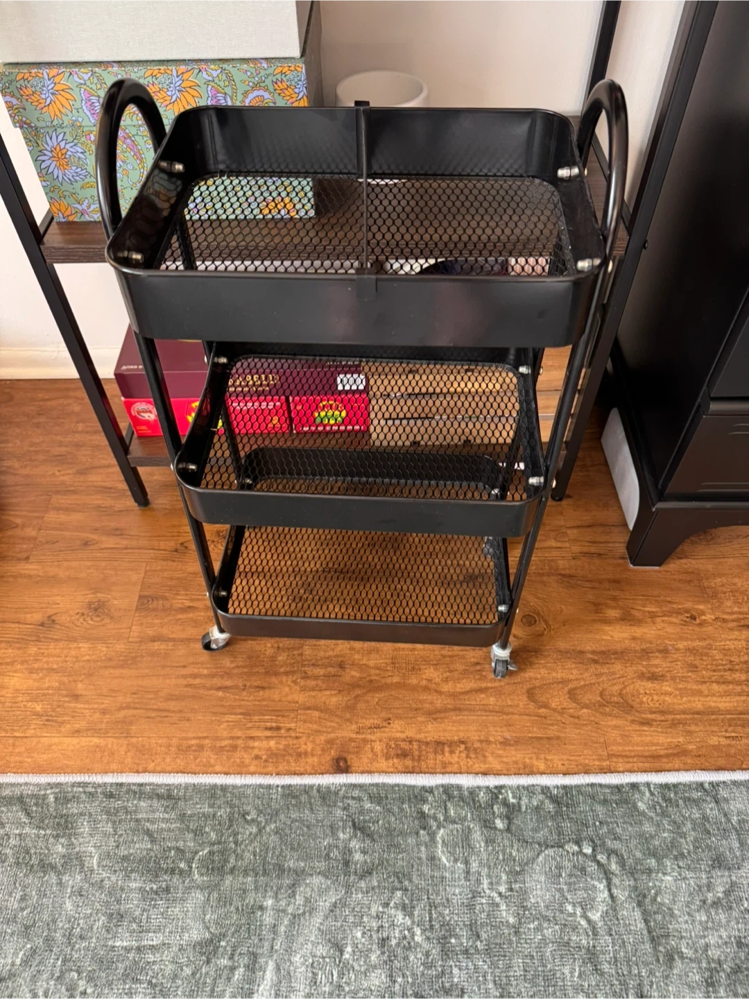 Buy & SellBlack Rolling CartBlack Rolling Cart$14Selling a black rolling cart! It has three tiers and is perfect for extra storage in the kitchen, bathroom, or anywhere else you need itConditionGoodWHERE TO MEETDearborn and DelawareView MapSELLERverifiedErikaNear North Side17212 reviews2 chats·9 favorites·179 viewsSEND CHAT TO SELLERHi Erika! I’m interested in your listing.Hi Erika! I’m interested in your listing.Get the Karrot app to chatSign In to chat