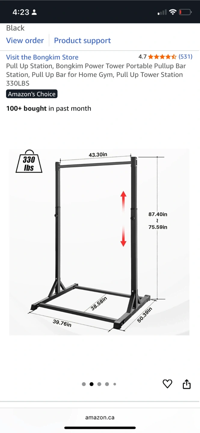 Selling a Bongkim Power Tower pull up station, great for home gym use! It's a portable pullup bar station that can handle up to 330lbs. Dimensions are: