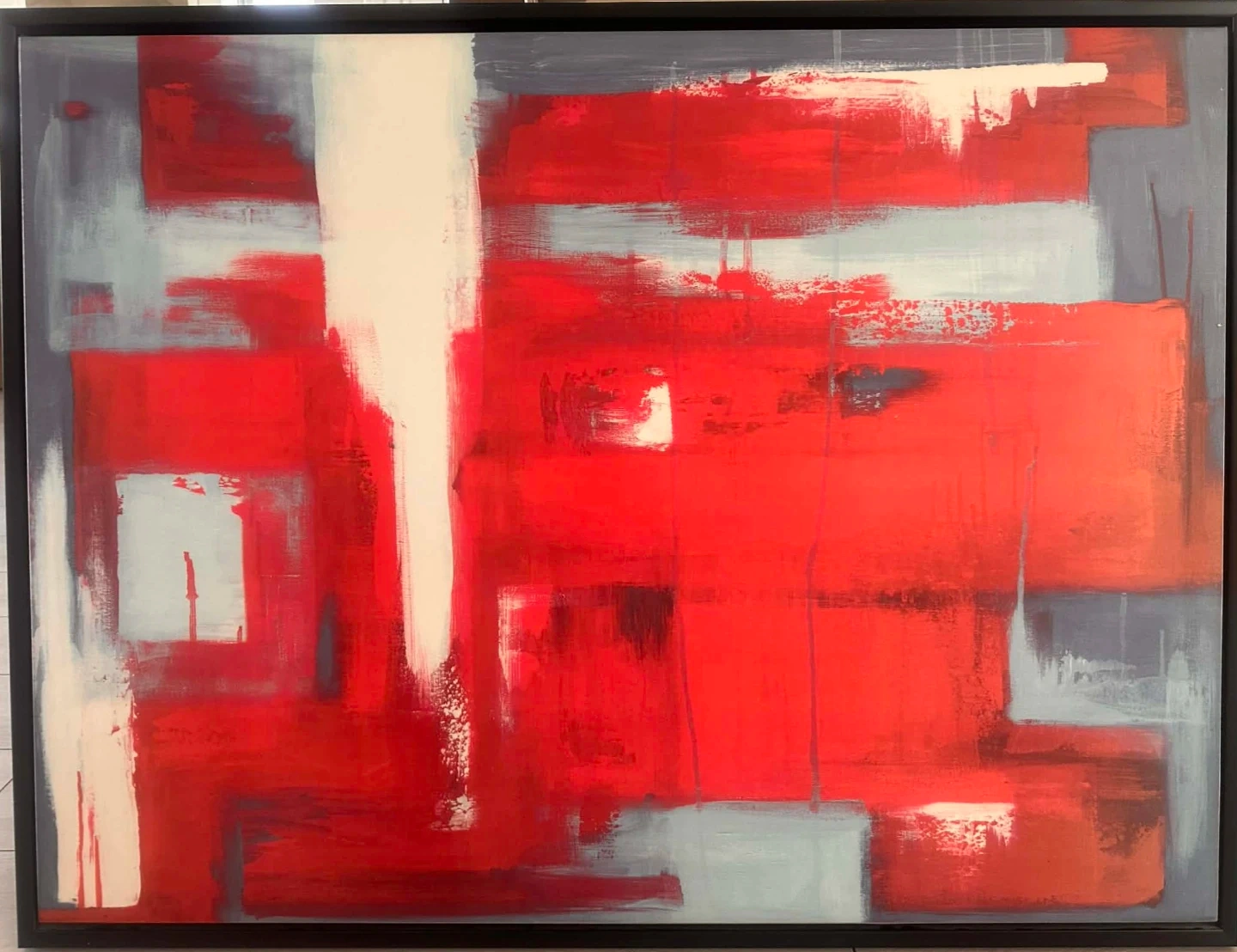 This is a framed abstract painting. It features a colourful, textured design. Great for adding a pop of colour to any room! Red Abstract is 42 x 32 inches, the Bluish Art work 42 x 30. $45 for 2