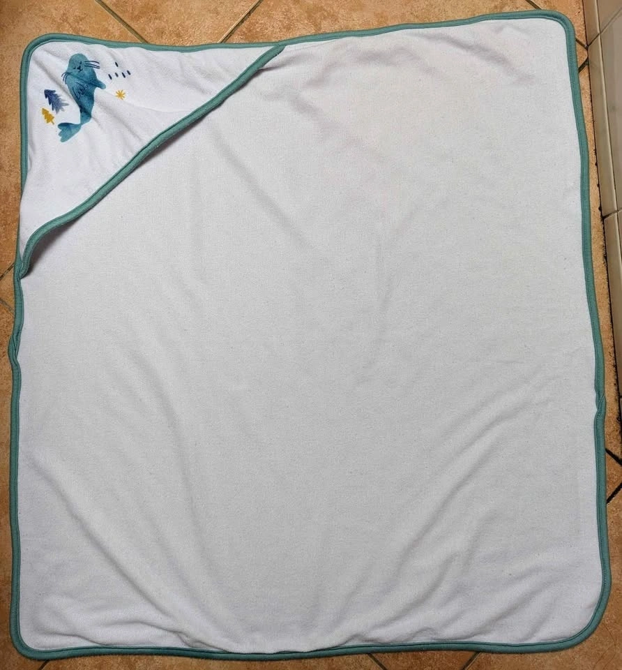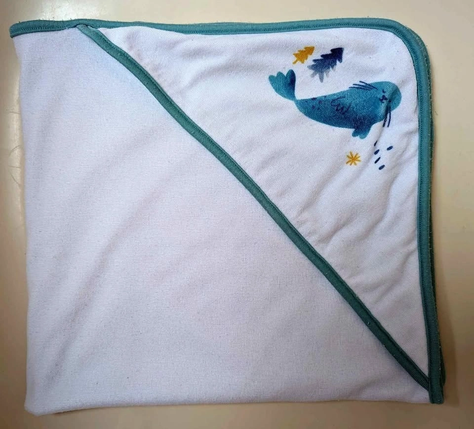 White baby toddler hooded bath shower towel for newborns and toddlers. Very good condition. From a non-pet and non-smoking home. Cash and exact change only. Price is firm. Pick-up only in the West end, no delivery.