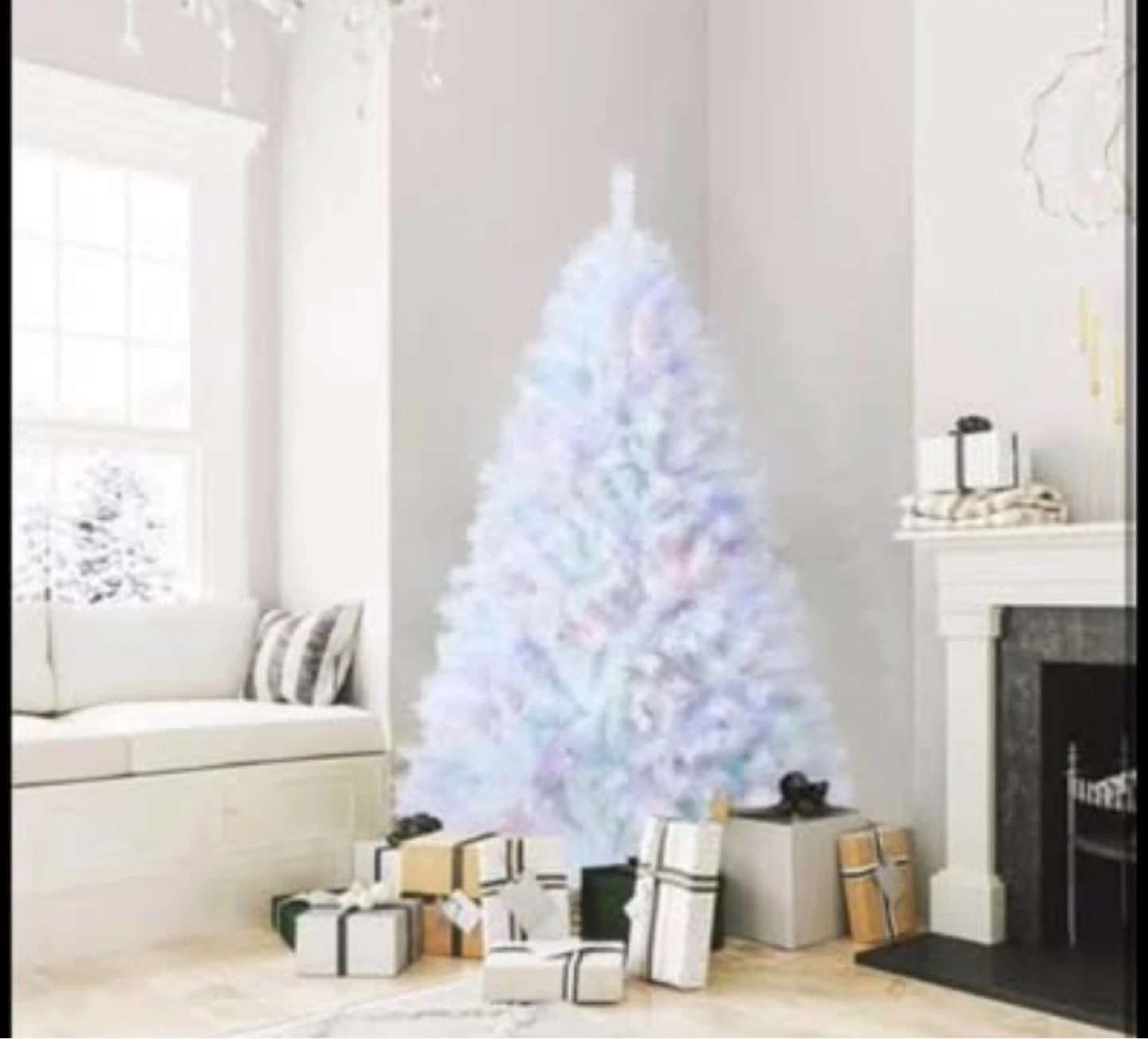 6FT White Christmas Tree Realistic Lush Xmas Tree with 792 PVC & PET Branch Tips Hinged Structure & Metal Base Artificial Iridescent Pine Tree for Festival Home cancel with so many different settings on the light brand new in the box price is firm