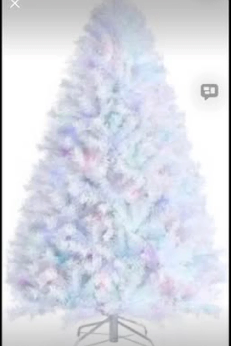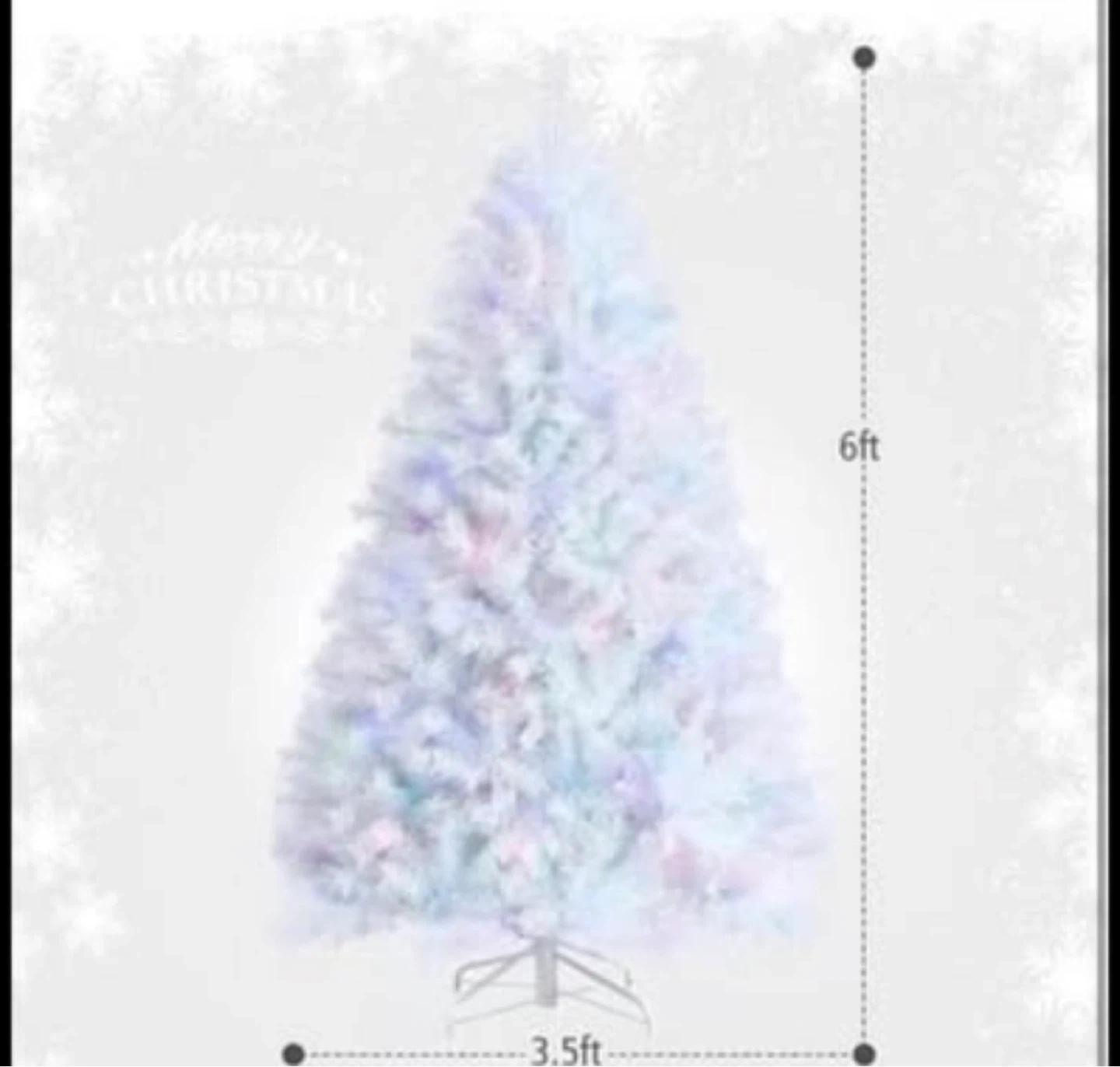 6FT White Christmas Tree Realistic Lush Xmas Tree with 792 PVC & PET Branch Tips Hinged Structure & Metal Base Artificial Iridescent Pine Tree for Festival Home cancel with so many different settings on the light brand new in the box price is firm