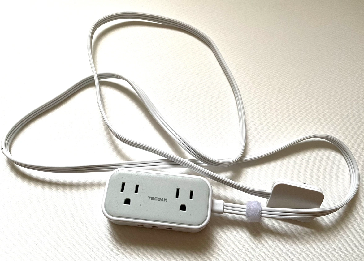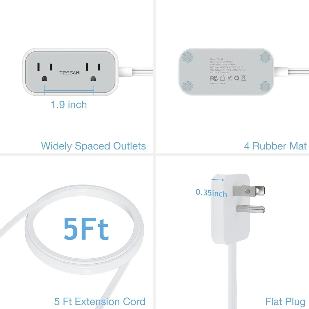 TESSAN Small Extension Cord w/ 2 outlets, 3 USB ports, and a 5ft cord.