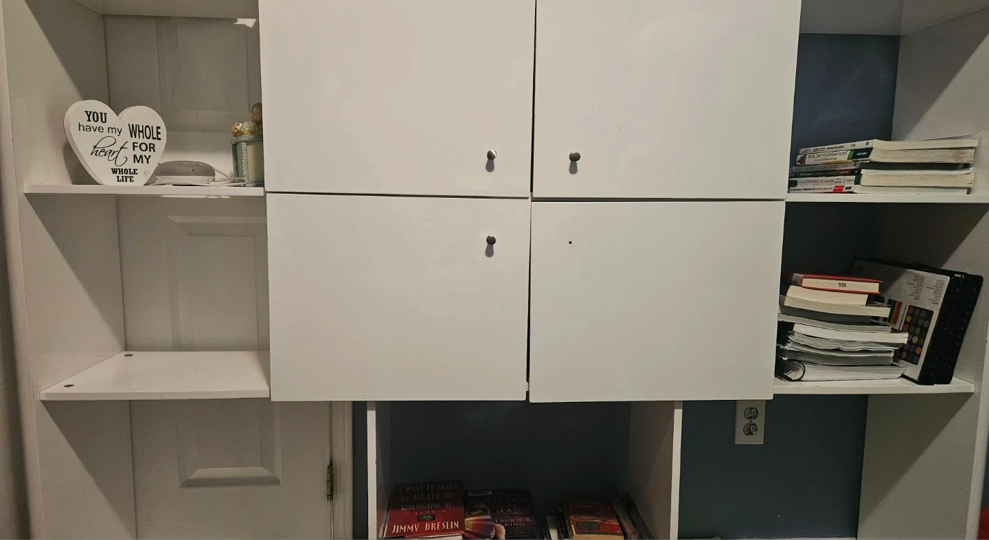 Selling a white storage cabinet. It's in good condition and offers plenty of space for organizing your belongings. Perfect for any room in the house!