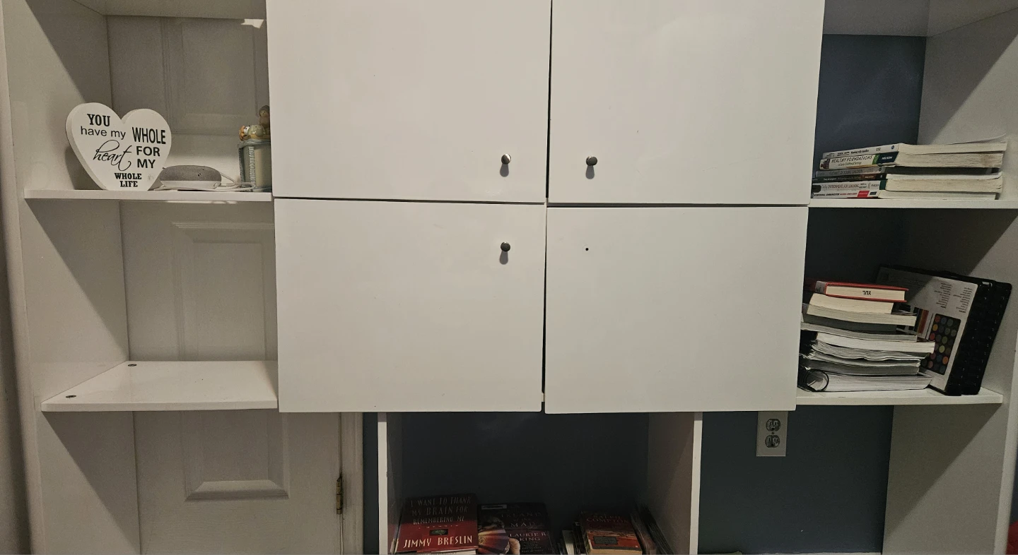 Selling a white storage cabinet. It's in good condition and offers plenty of space for organizing your belongings. Perfect for any room in the house!
