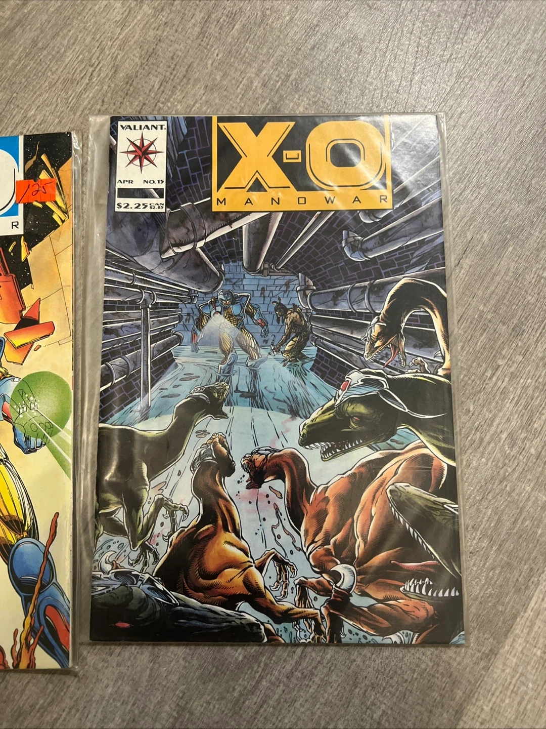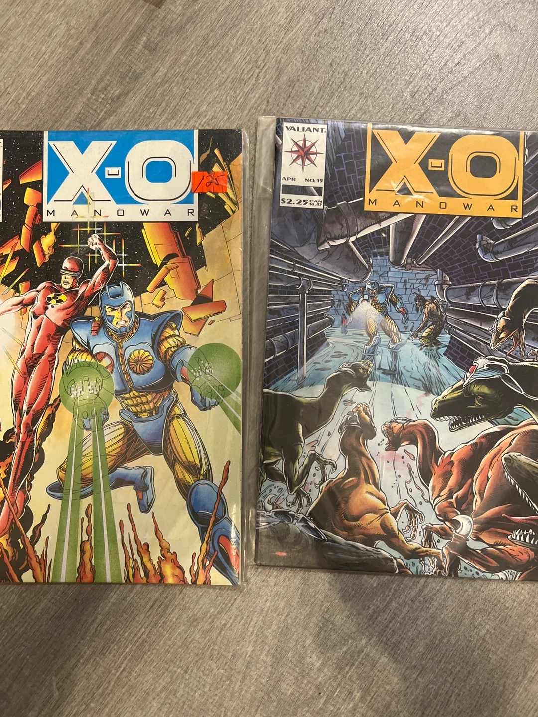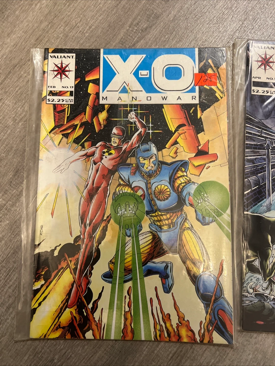 This listing includes two Valiant X-O Manowar comic books, issues #15 and #17. Both comics are in protective sleeves. Issue #15 is dated April, and Issue #17 is dated February. These comics are great for any collector!