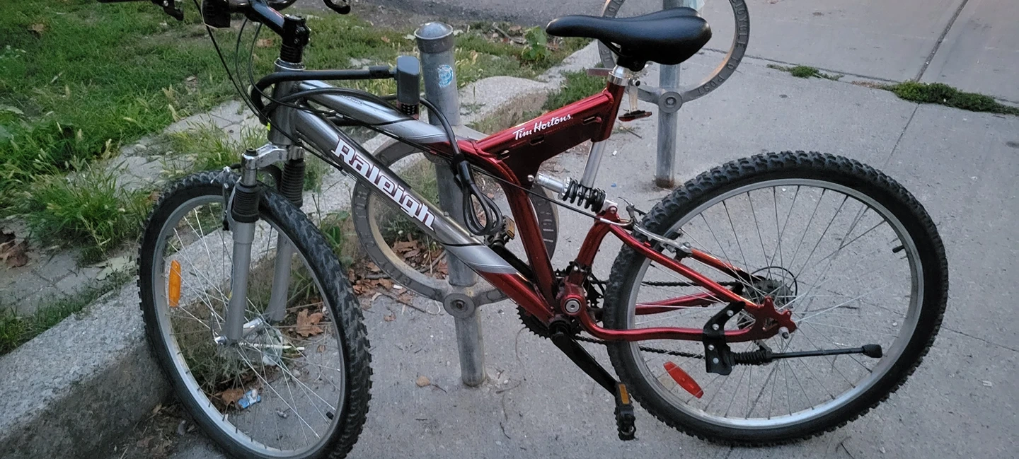 1- Raleigh Bike 26 in, dual suspension, dual gears, good condition
