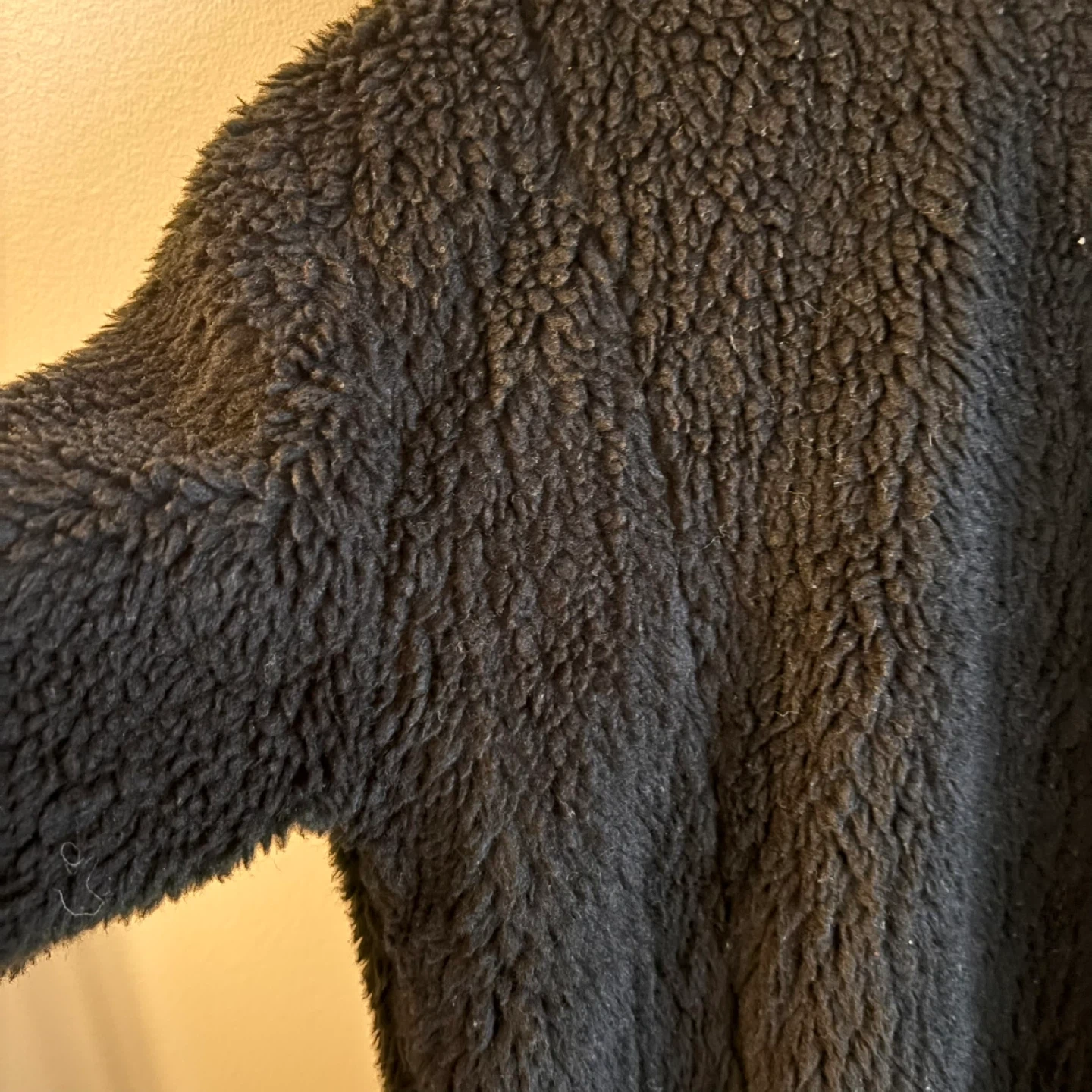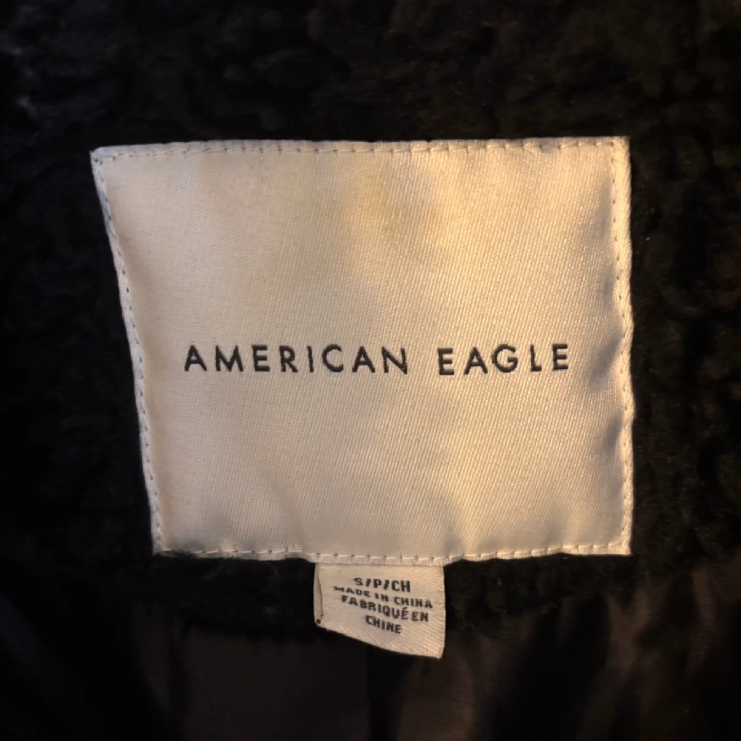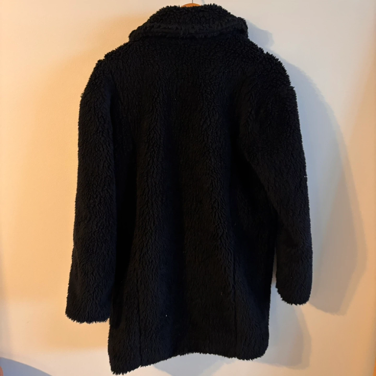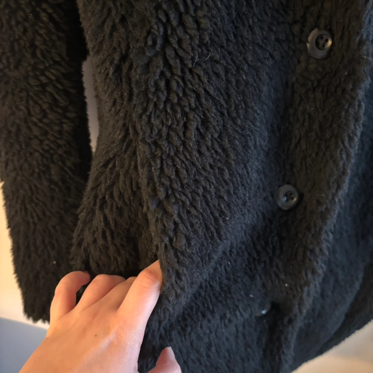 Comfy black teddy coat from American Eagle. It's a size small with a button-up front. Made with a soft, fuzzy material for warmth.
