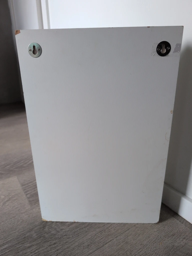 Memories box pin or put items inside magnetic close on door hangs on wall by 2 nails on back .