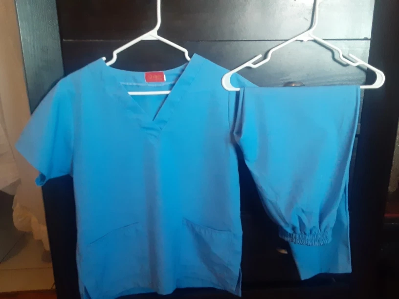 Selling a Zelgin scrub set in a lovely blue colour! It includes both the top and the pants. V-Neck with pockets.Perfect for healthcare professionals or students