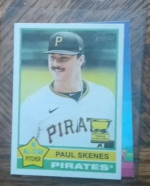 Selling a Paul Skenes Topps baseball card. It features the Pirates player Paul Skenes, an NL All-Star pitcher!