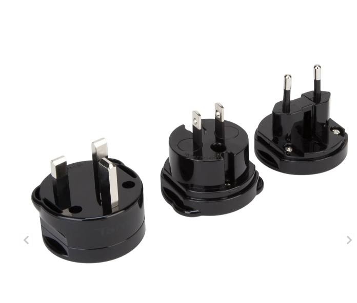 Power your electronic devices when you're traveling with these travel power adapters that are compatible with the power voltage of various countries around the world. Compatible with countries in Africa, Asia, the Caribbean, Central America, Europe, the Middle East and North America. Red safety shutters provide protection against accidental contact with electric current. High-impact polycarbonate plastic for durability. Compact and flexible design can be broken apart for easy portability.