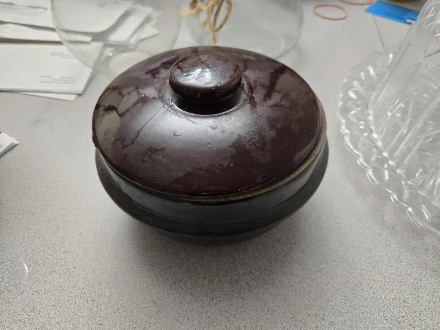 Brown Stoneware Pot with Lid