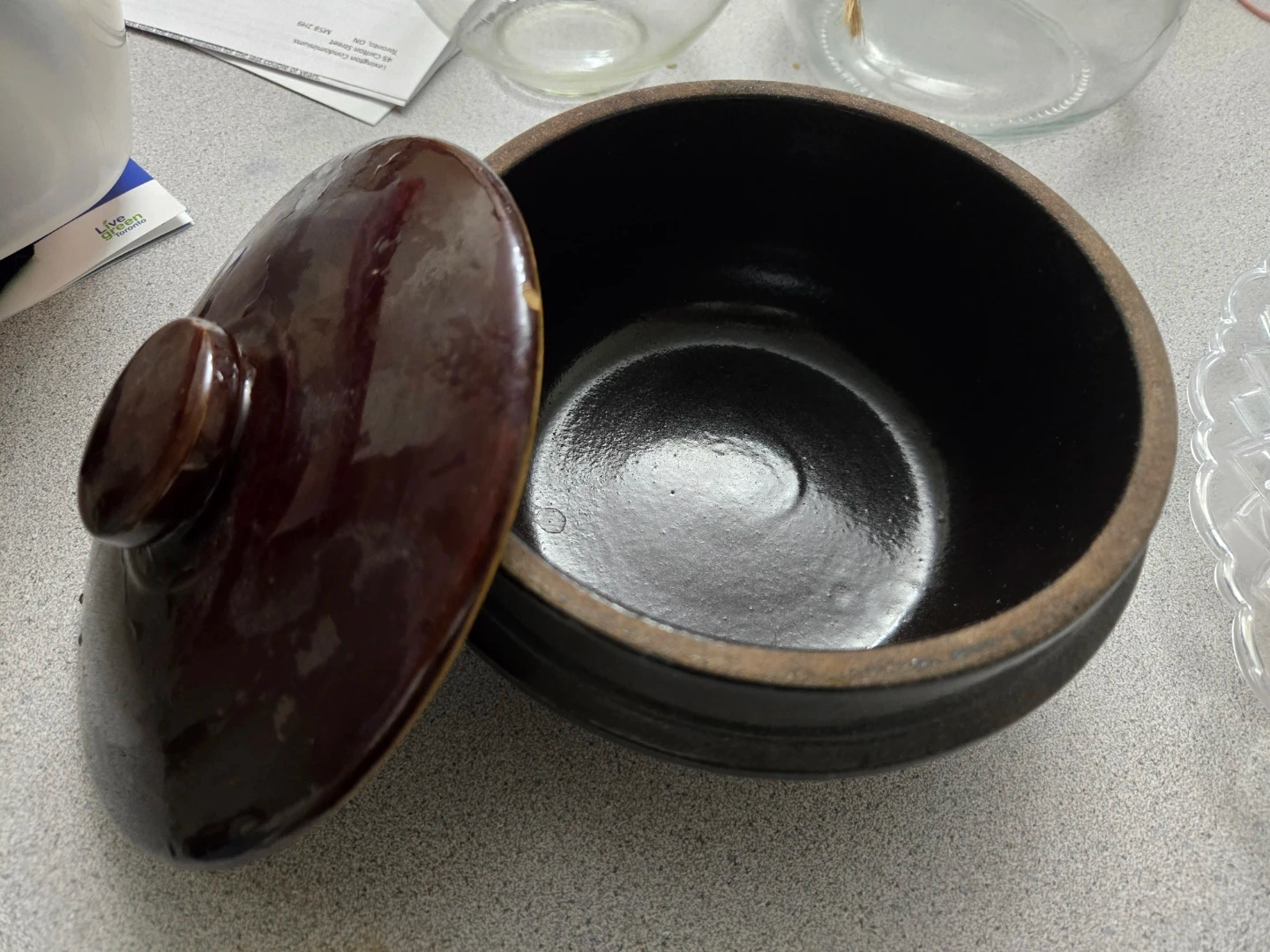 Brown Stoneware Pot with Lid