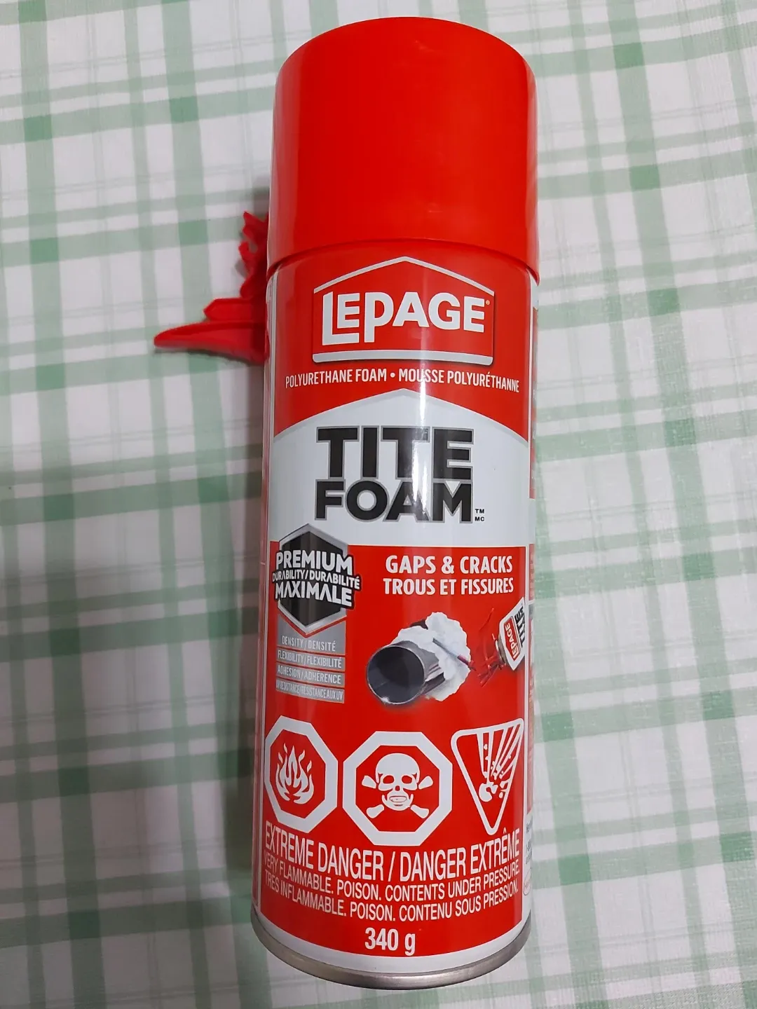 Lepage Tite Foam is a polyurethane sealant for gaps and cracks. It offers premium durability with good density, flexibility, and adhesion. The can contains 340g of product.