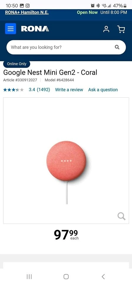 Buy & SellGoogle Nest MiniGoogle Nest Mini$55Used like new.WHERE TO MEETCheck LocationView MapSELLERSami AhmadNorval100 reviews0 chats·0 favorites·8 viewsSEND CHAT TO SELLERHi Sami Ahmad! I’m interested in your listing.Hi Sami Ahmad! I’m interested in your listing.Get the Karrot app to chatSign In to chat